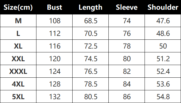 Size:M,L,XL,2XL,3XL,4XL,5XL