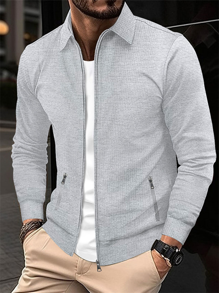 Jacket Men's Spring and Fall Waffle Zipper Pockets Lapel Slim Cardigan Men's Jacket
