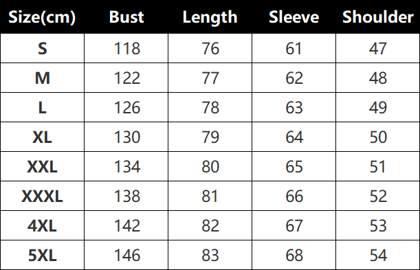 Sizes: S, M, L, XL, XXL, XXXL, XXXXL, 5XL