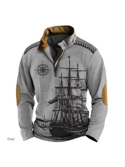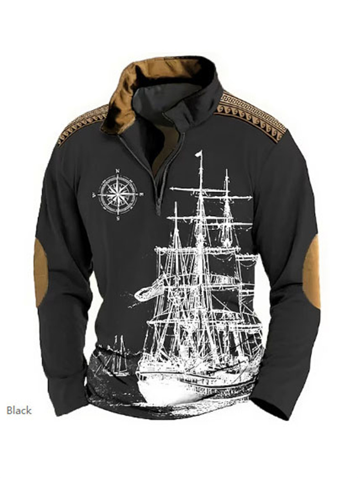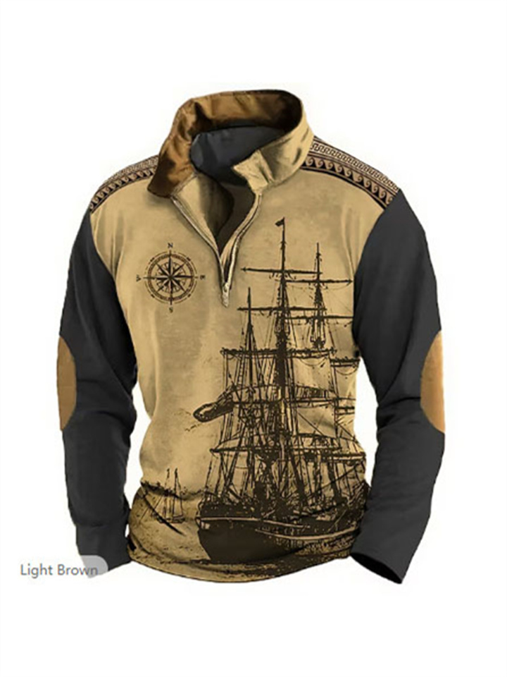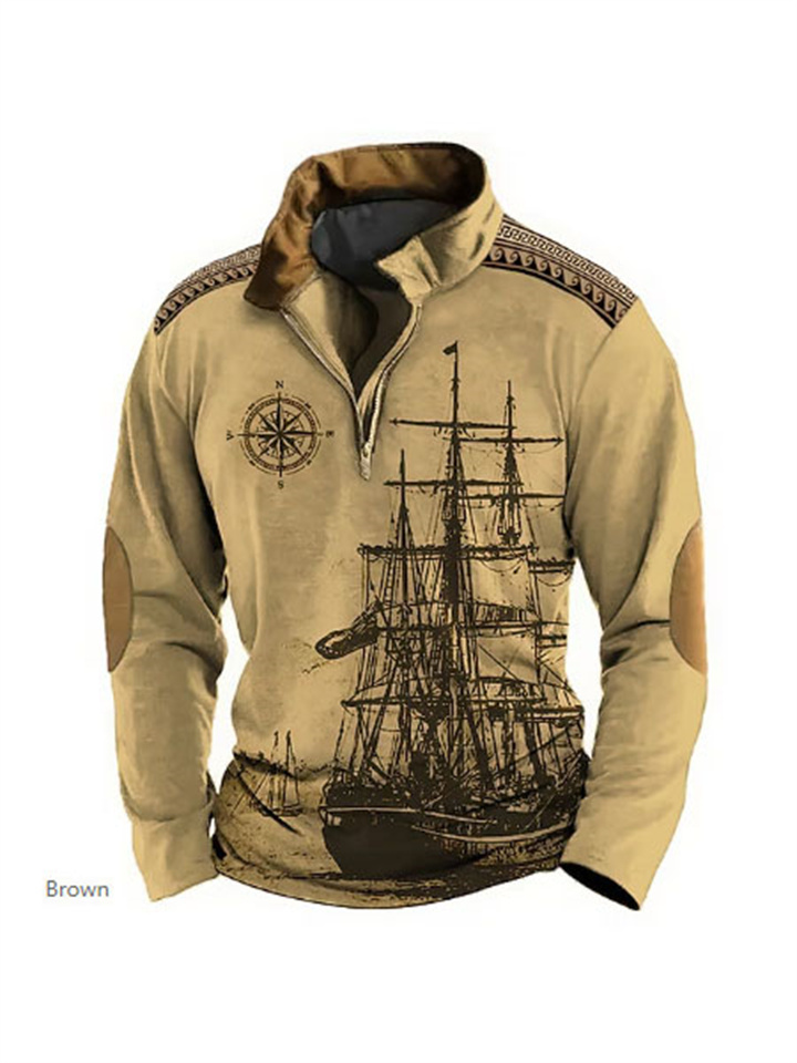Loose Pullover Standing Collar Long Sleeve Half Zipper Sweatshirt Ethnic Style 3d Printed Half Zipper Sweatshirt Men Sweatshirt