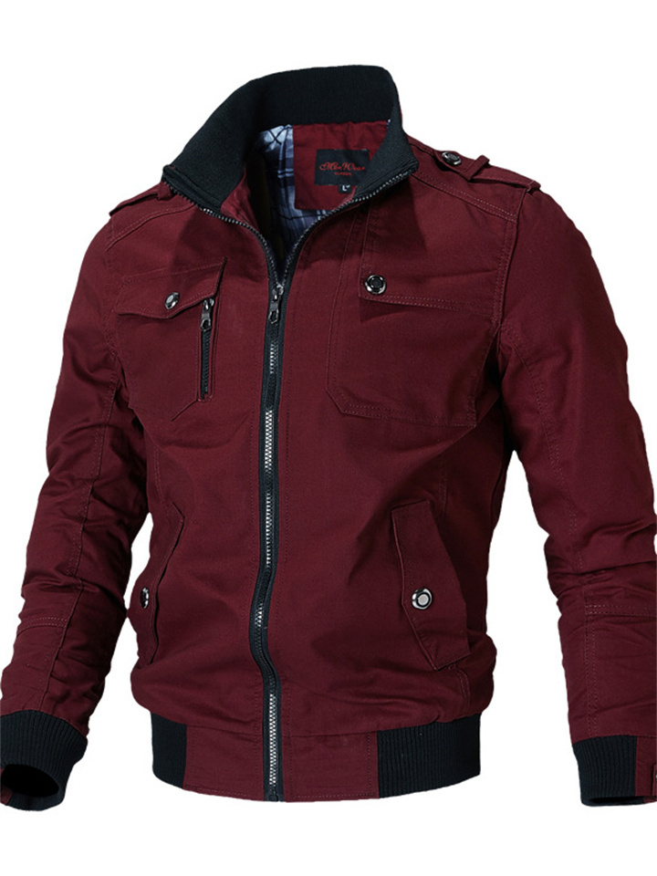 Men's Bomber Jacket Work Jacket Windproof Warm Sports Climbing Hiking Zipper Stand Collar Jacket Outerwear Solid Color Patchwork Black Blue Army Green