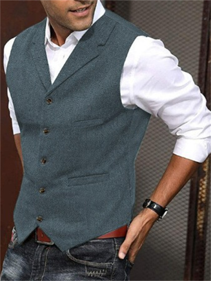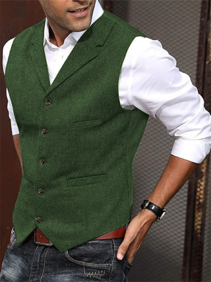 Men's Business Suit Vest Fashion British Retro Herringbone Undershirt Casual Workwear Slim Vest