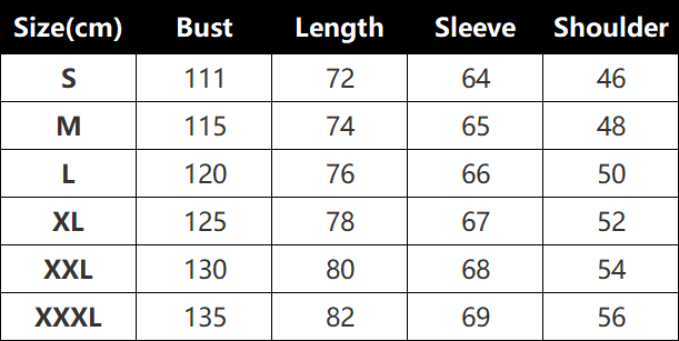 Sizes: S, M, L, XL, XXL, XXXL