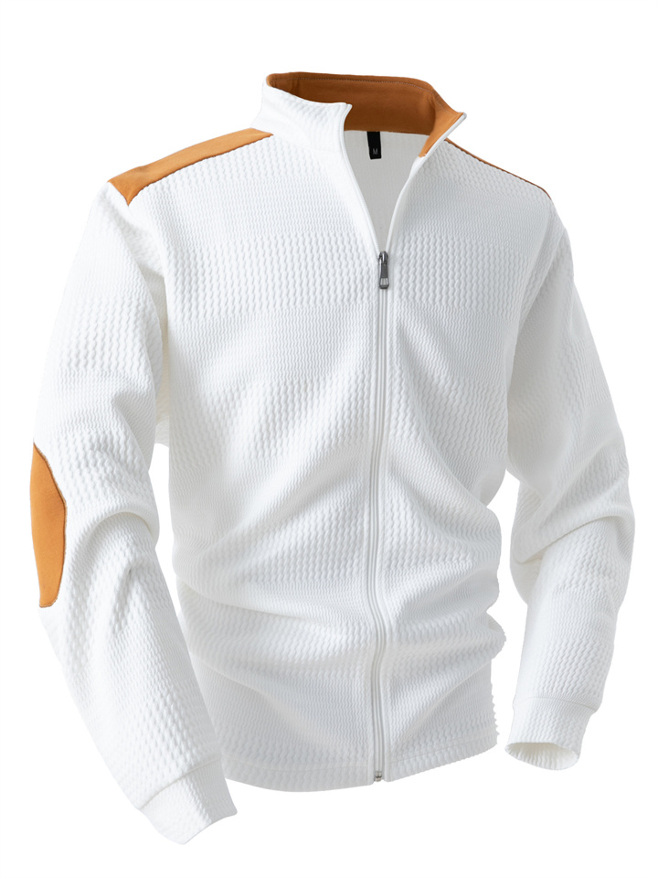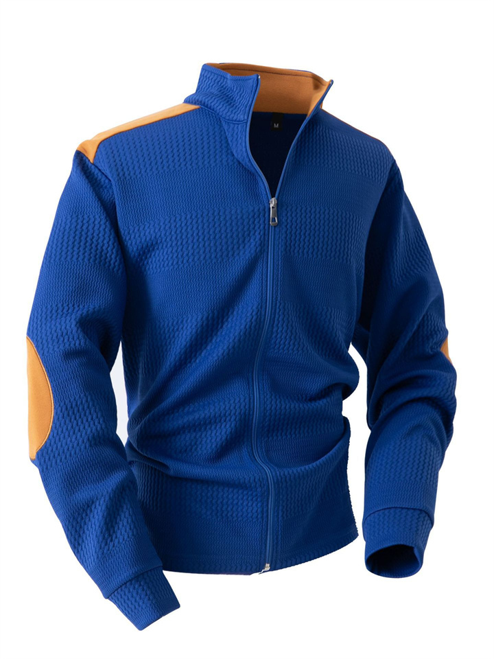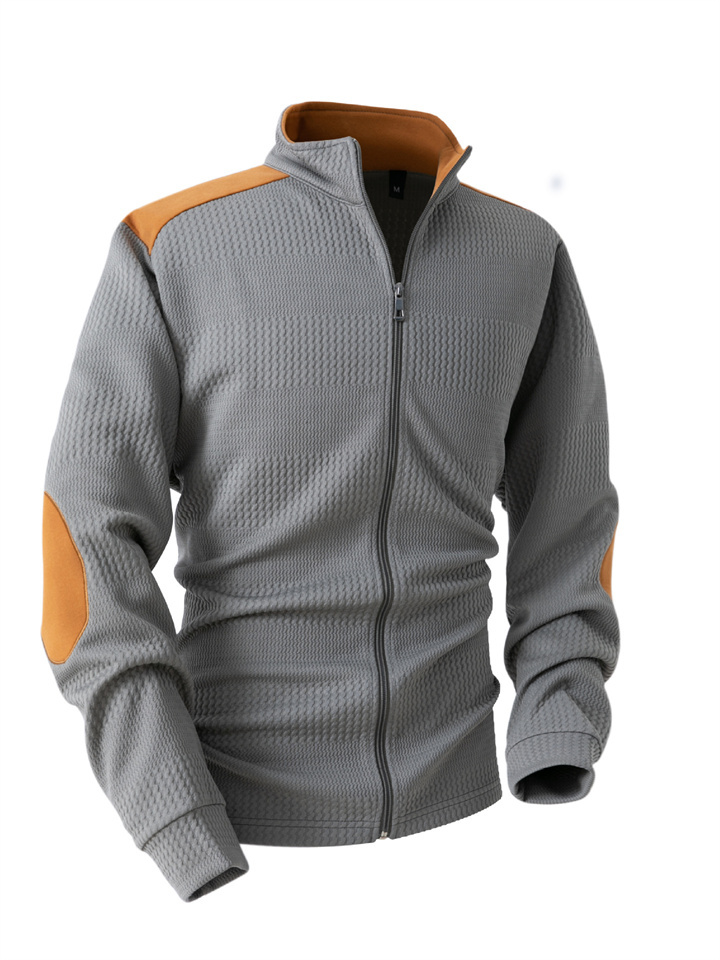 Men's Casual Sports Jacquard Long-Sleeve Zipper Lapel Jacket for Spring/Fall
