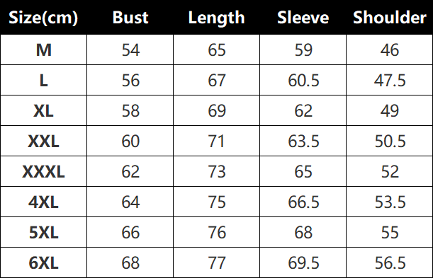 Size:M,L,XL,XXL,XXXL,XXXXL,5XL,6XL
