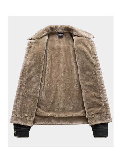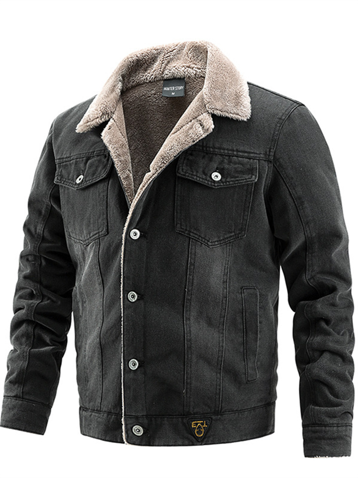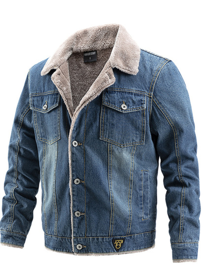 Men's Denim Jacket Fall/Winter Jacket Fleece-Lined Casual Men's Outerwear