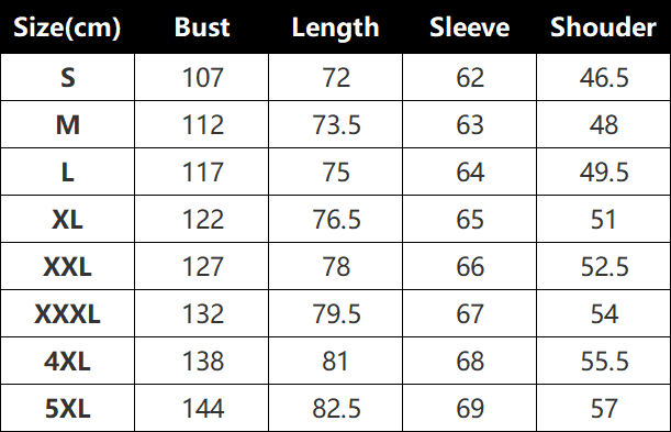 Sizes: S, M, L, XL, XXL, 3XL, 4XL, 5XL
