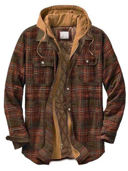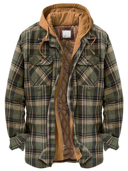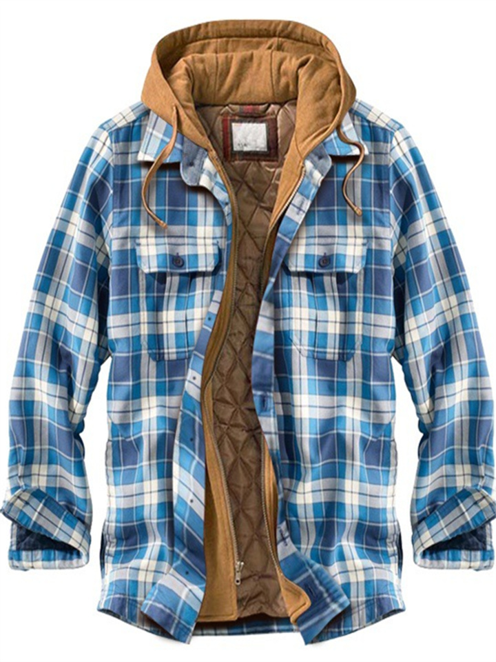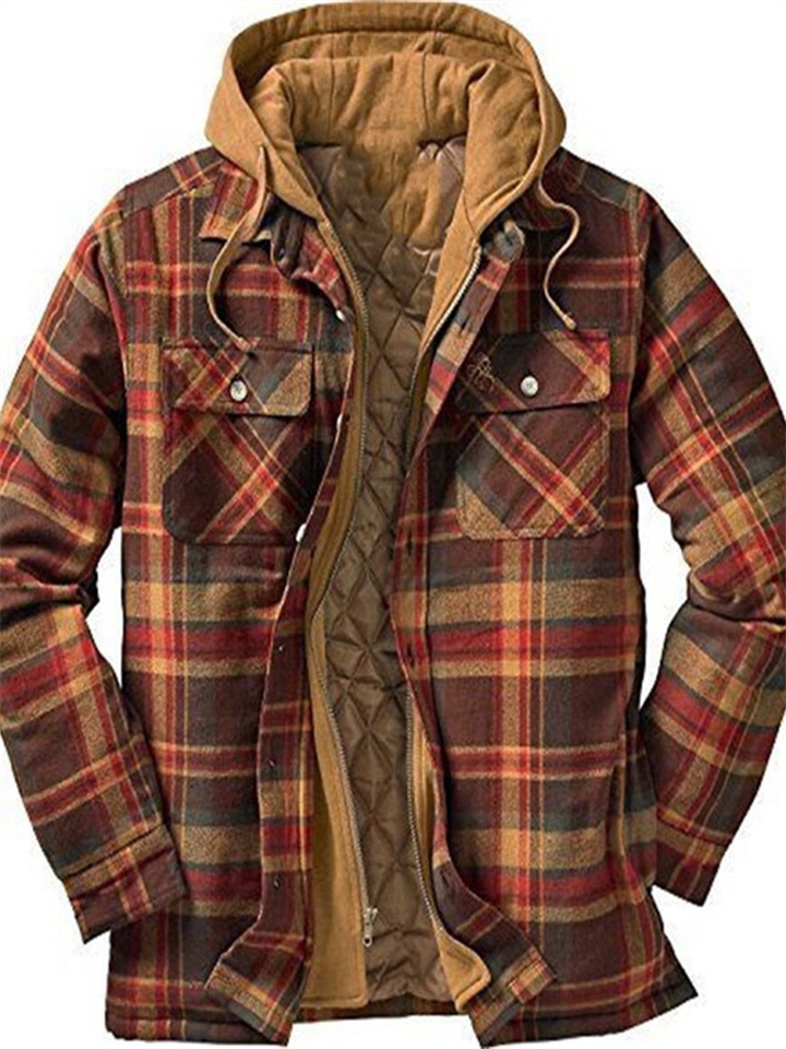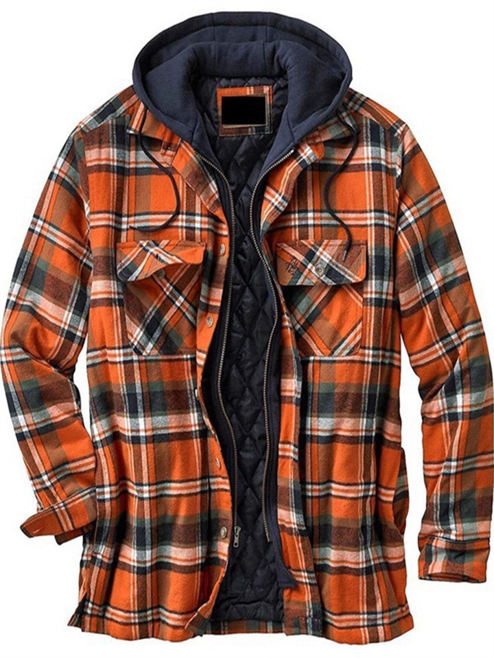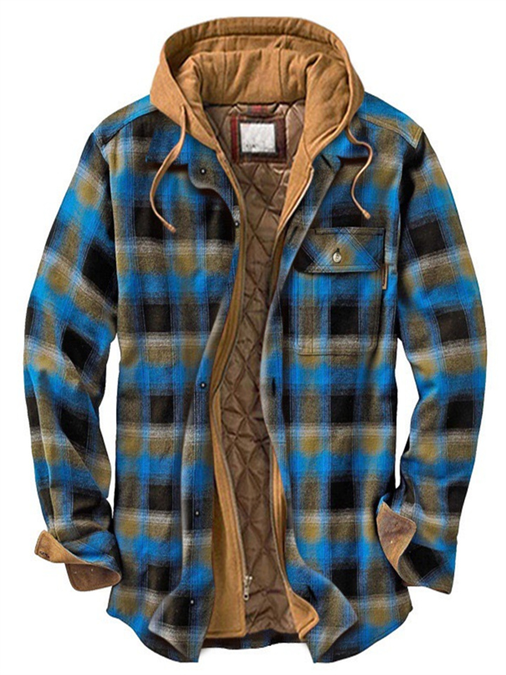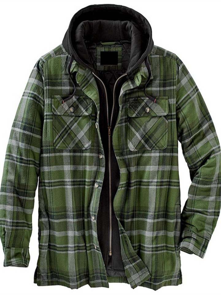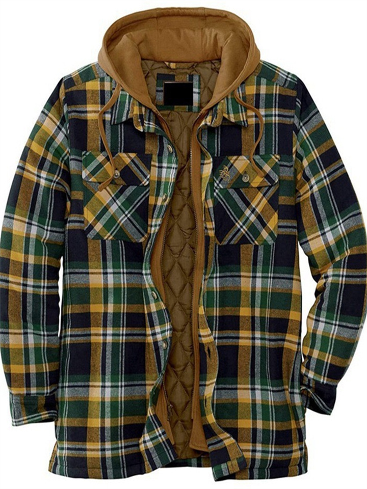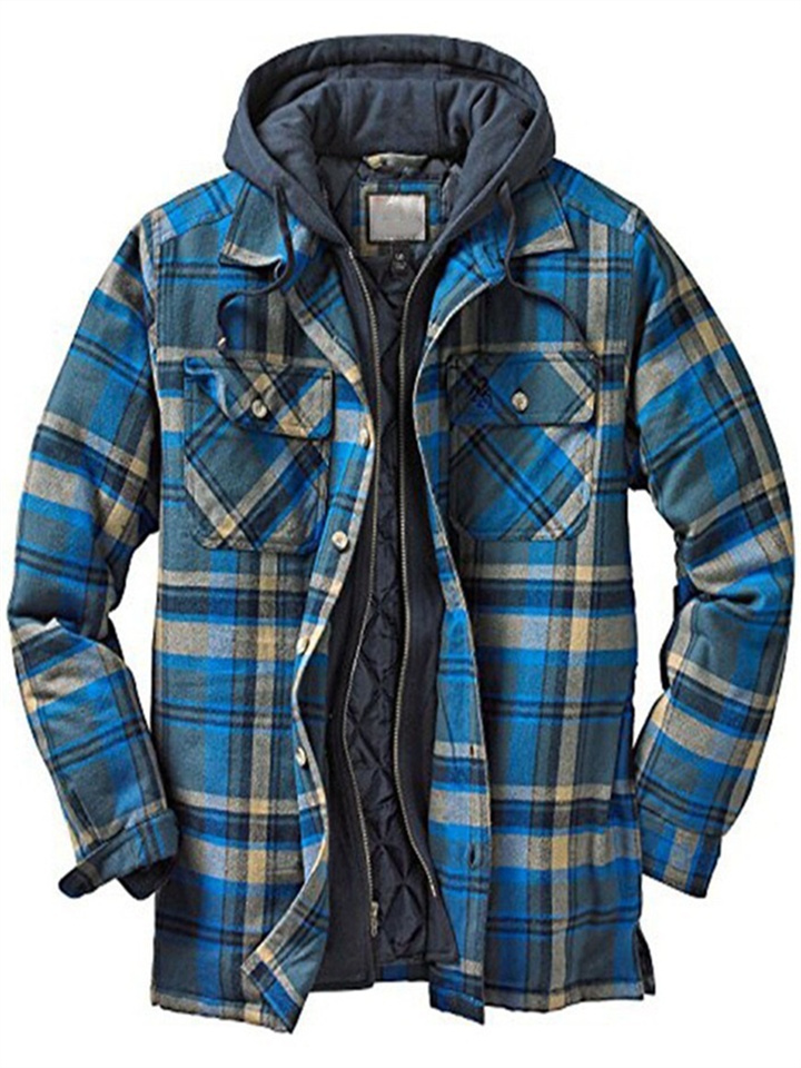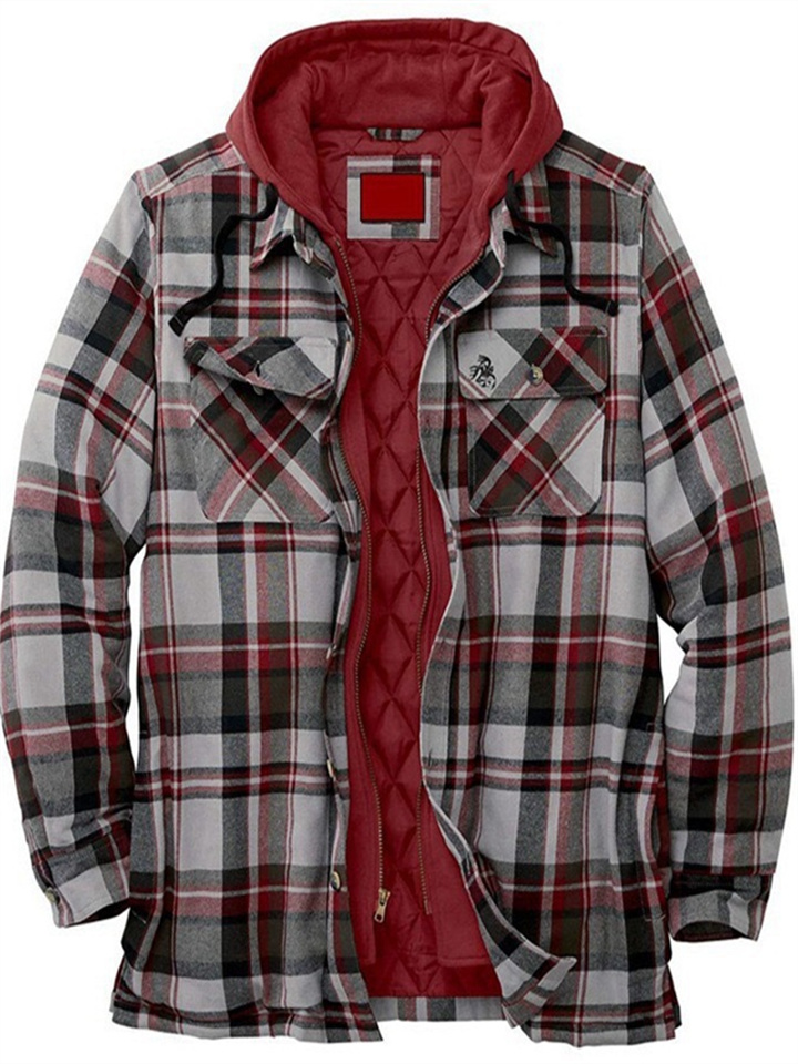 Men's Fall/Winter Thickened Cotton Checkered Long-Sleeve Relaxed Jacket