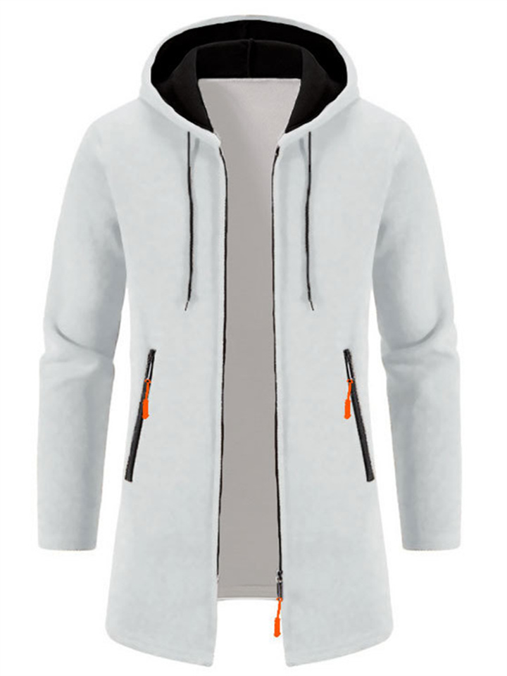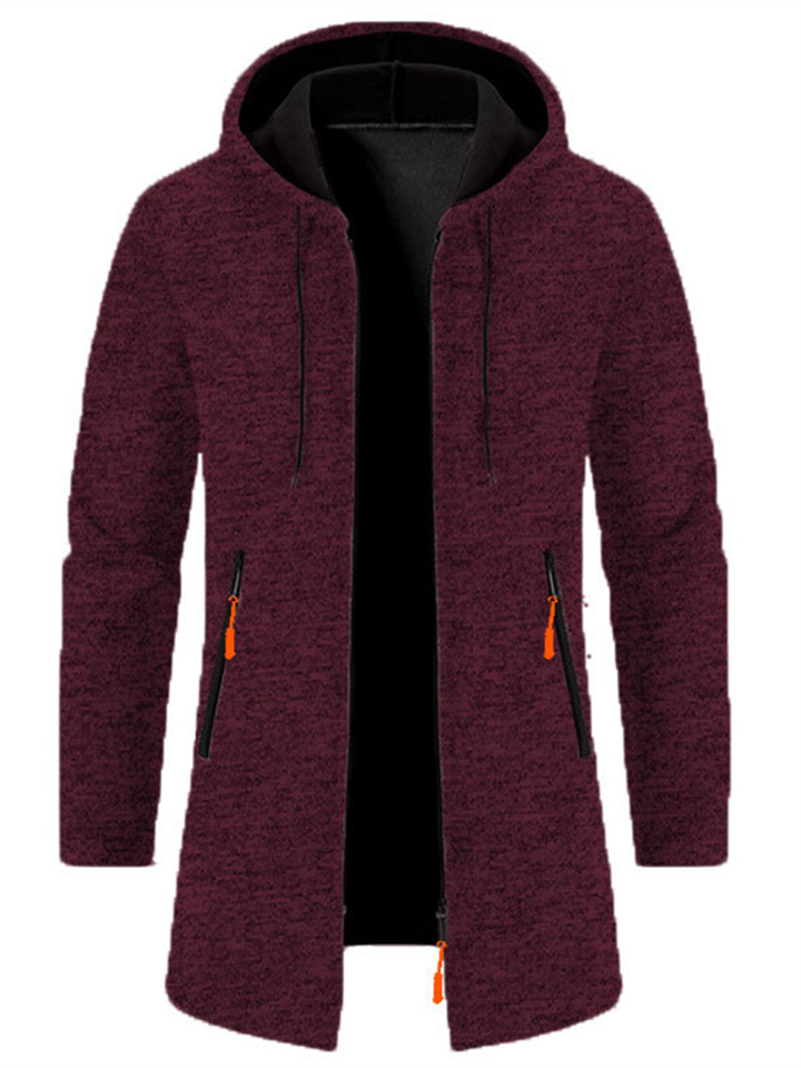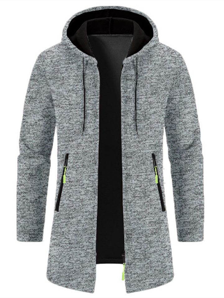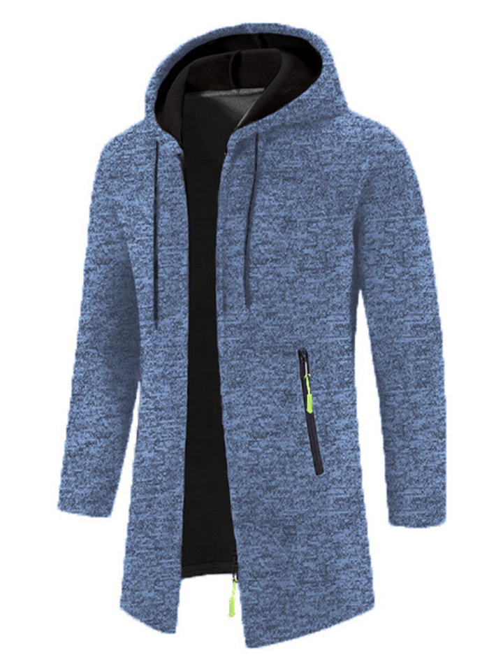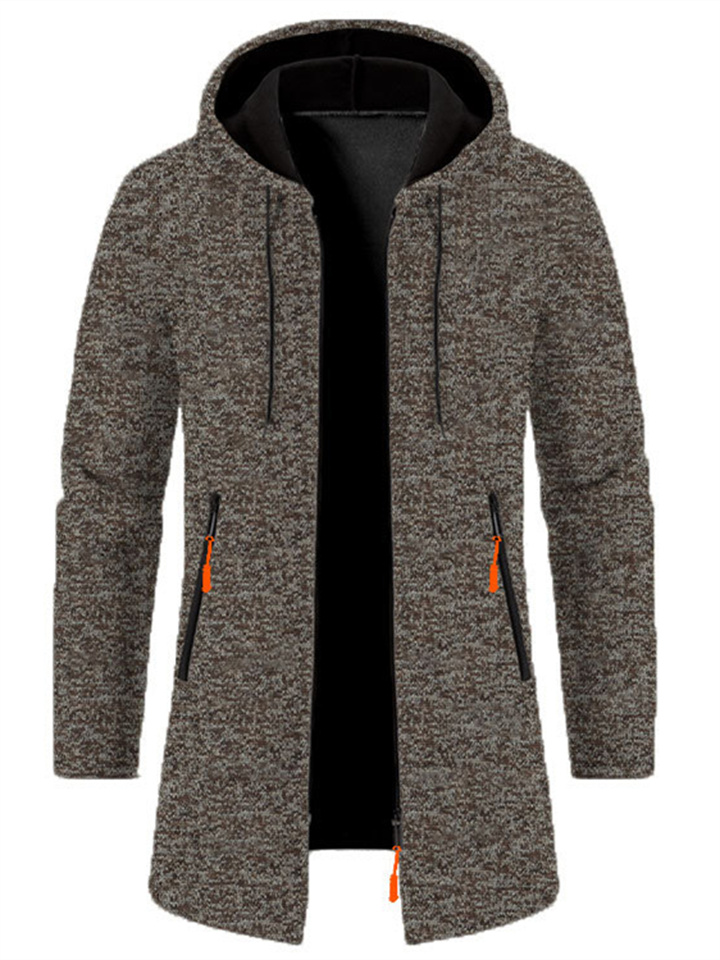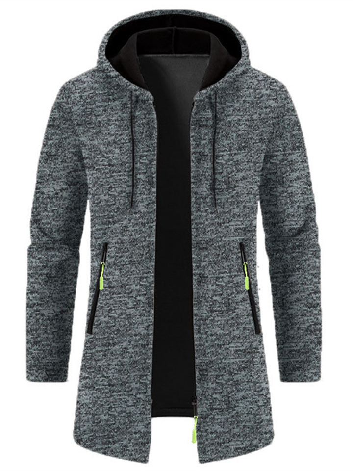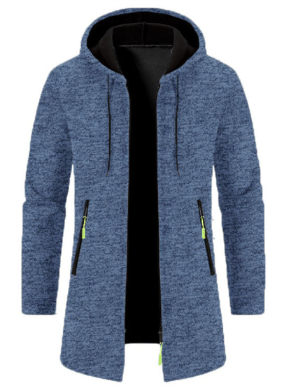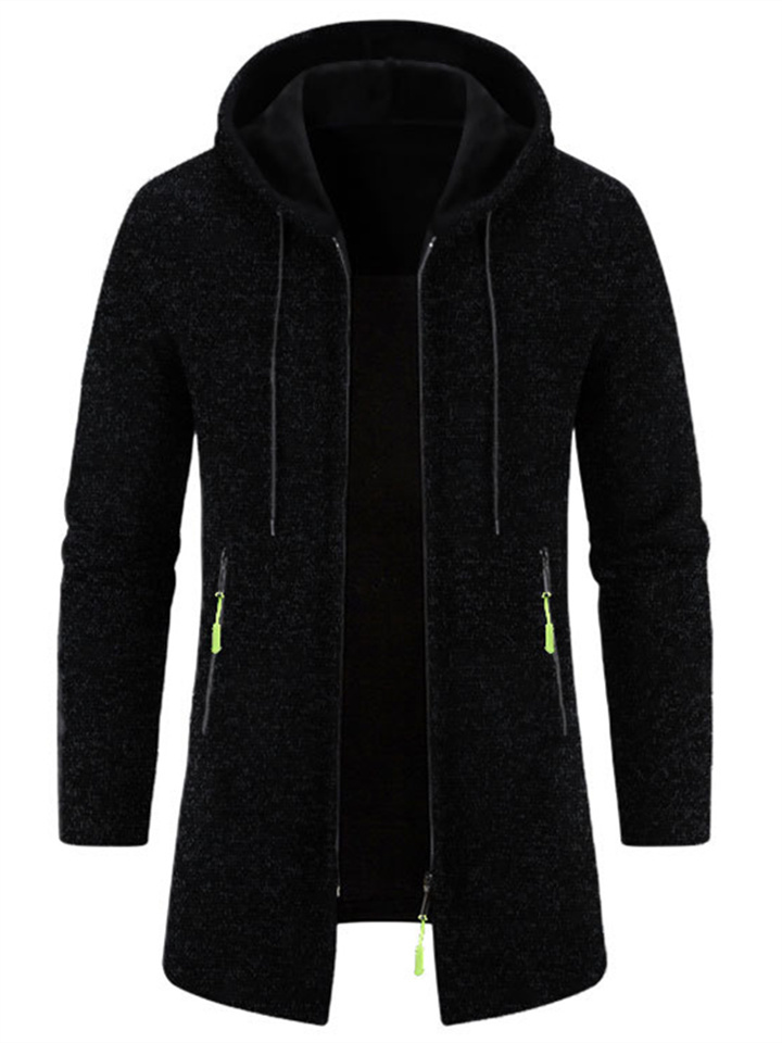 Men's Hooded Mid-Length Lightweight Fleece Oversized Sweater Jacket Knit Cardigan