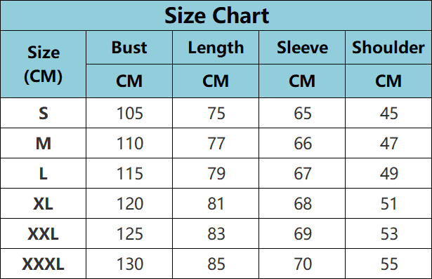 Sizes: S, M, L, XL, XXL, 3XL