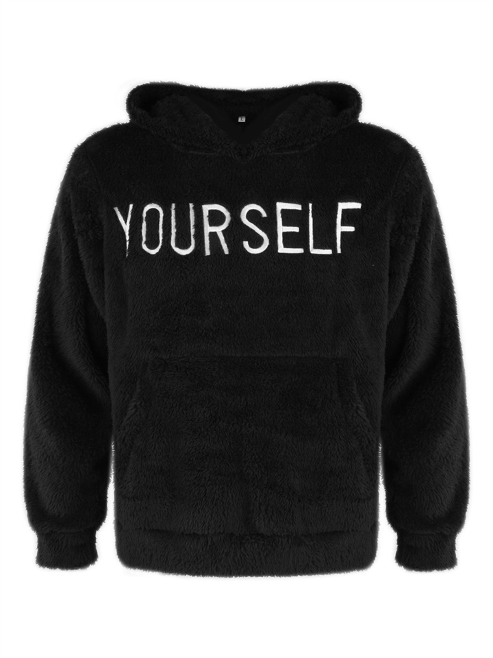 Men's Hoodie Fuzzy Sherpa Black White Khaki Hooded Letter Pocket Print Cool Sportswear Casual Winter Fall & Winter Clothing Apparel Hoodies Sweatshirts Long Sleeve