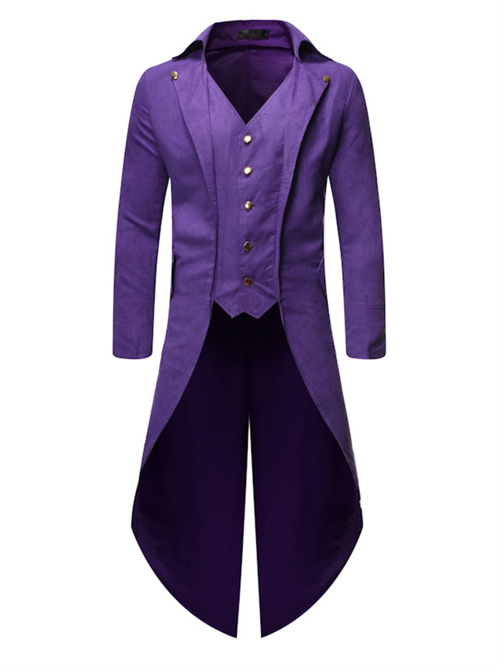 Men's Lapel Long Sleeve Single Breasted Solid Color Button Irregular Slim Men's Tuxedo