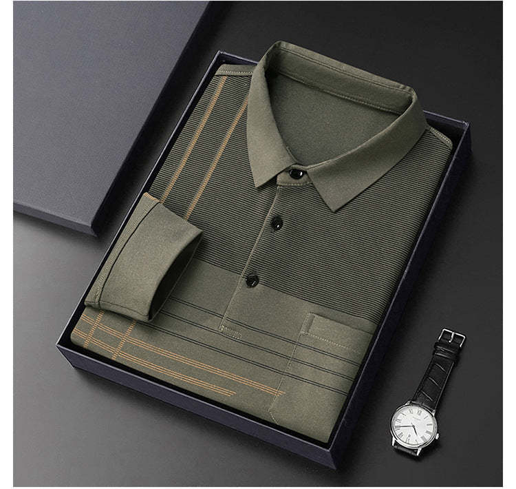 Type: Men's Long Sleeve Striped Lapel Shirt