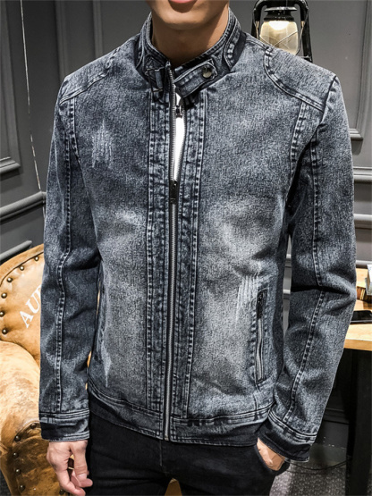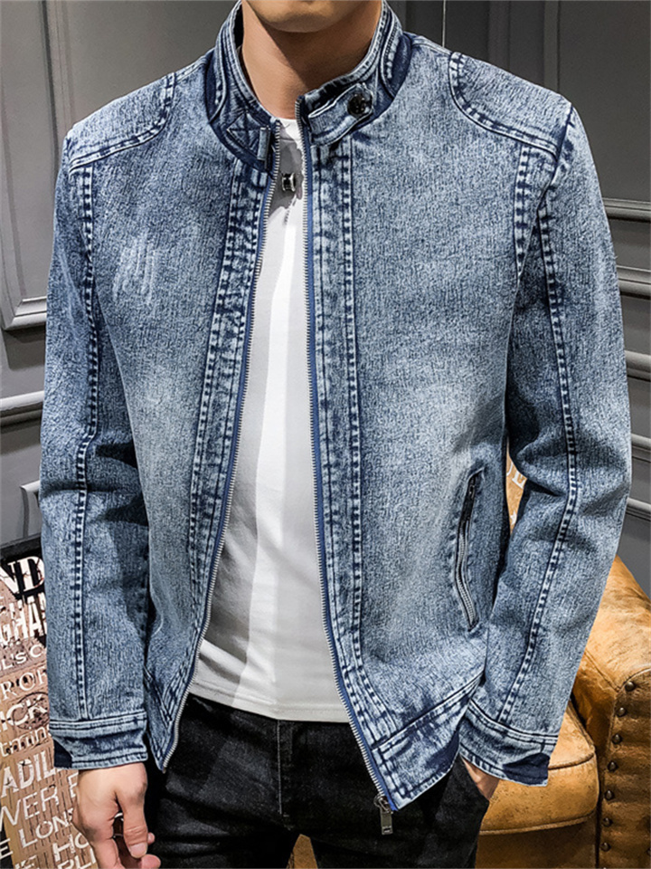Men's Long-sleeved Stand-up Collar Jacket Retro Denim Jacket Youth Casual Jacket Male Trend Solid Color Slim Men's Clothing