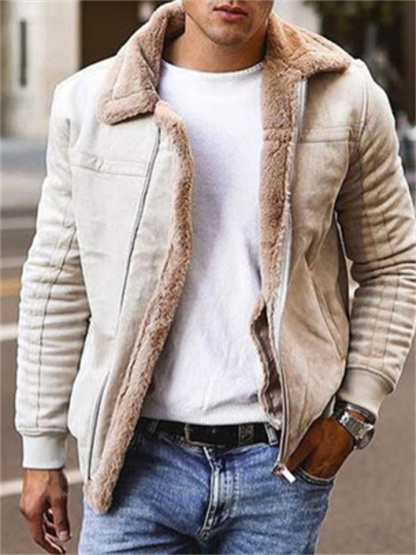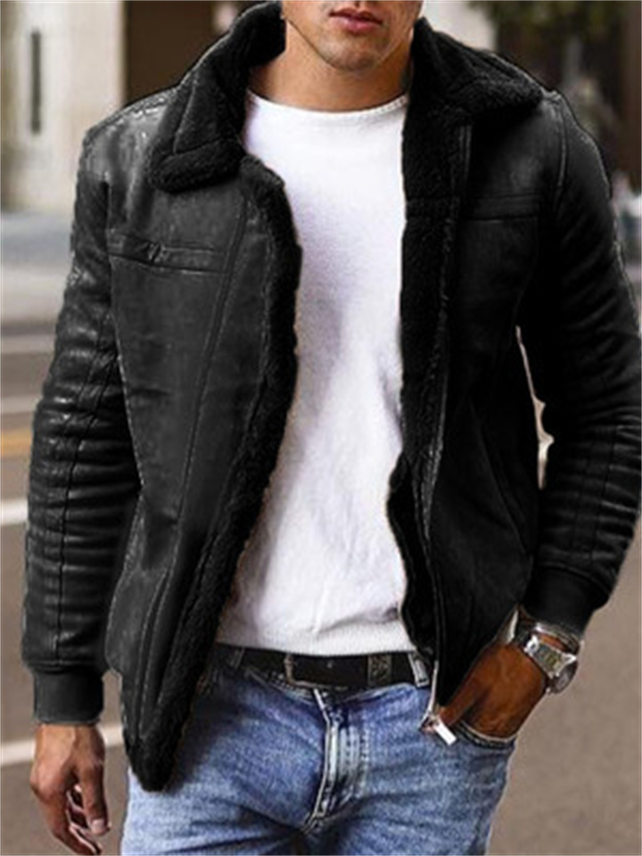 Men's Matte Velvet Solid Color Composite Leather Jacket