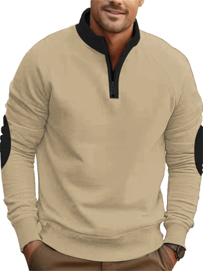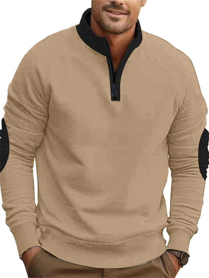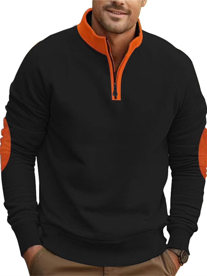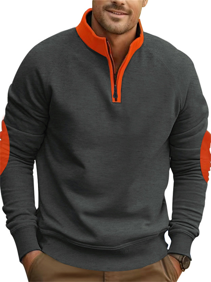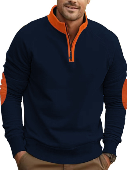 Men's New Arrival Color-Blocked Fall/Winter Casual Hoodie with Fleece Lining Stand Collar Half-Zip Long Sleeve