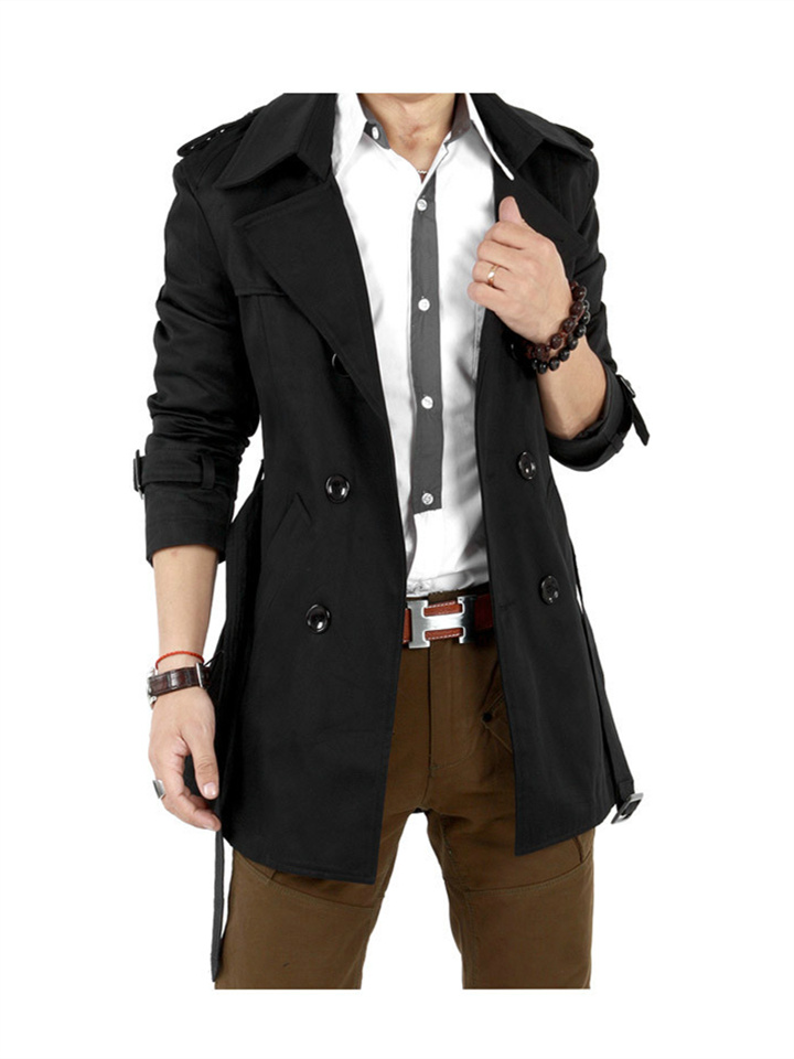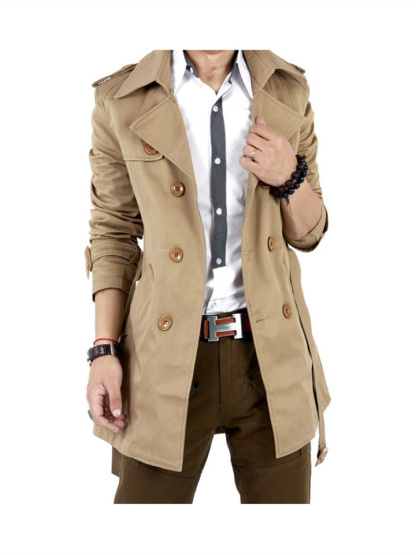 Men's New Mid-Length Trench Coat Solid Color Double-breasted Trench Coat