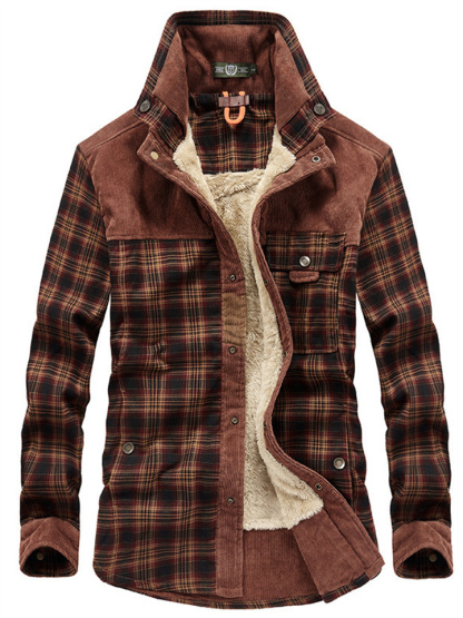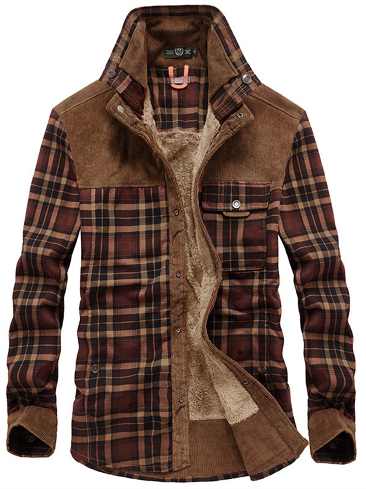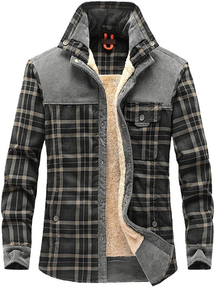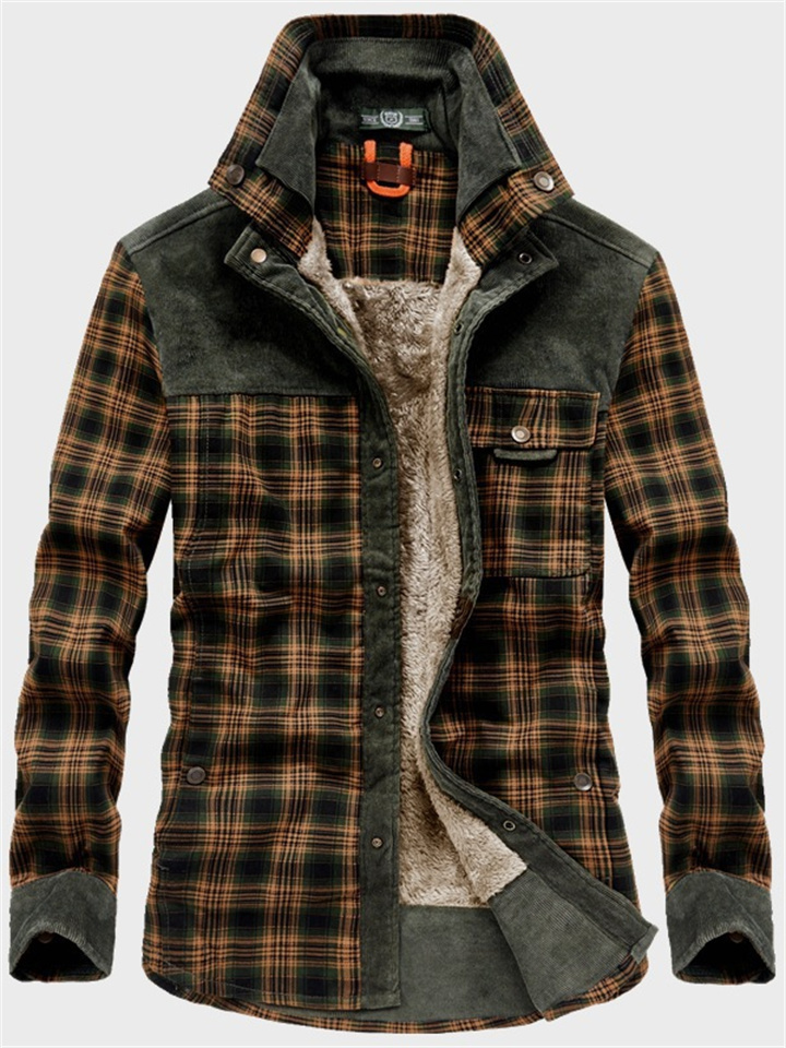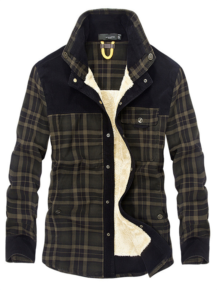 Men's Padded Thickened Long-sleeved Plaid Shirt Warm Fashion Cotton Shirt Jacket