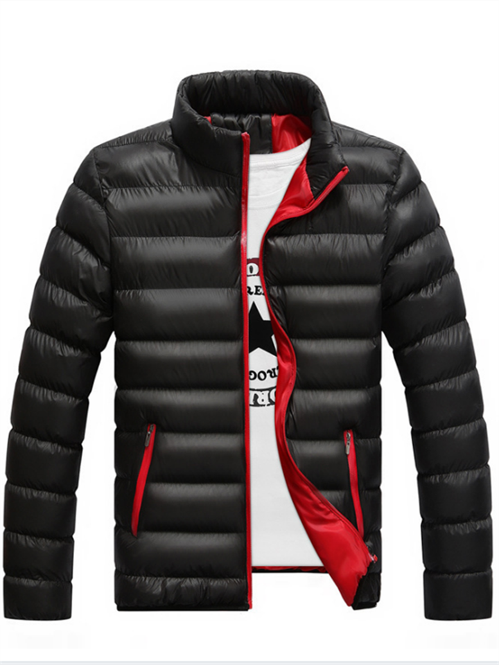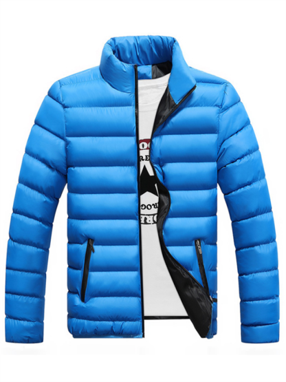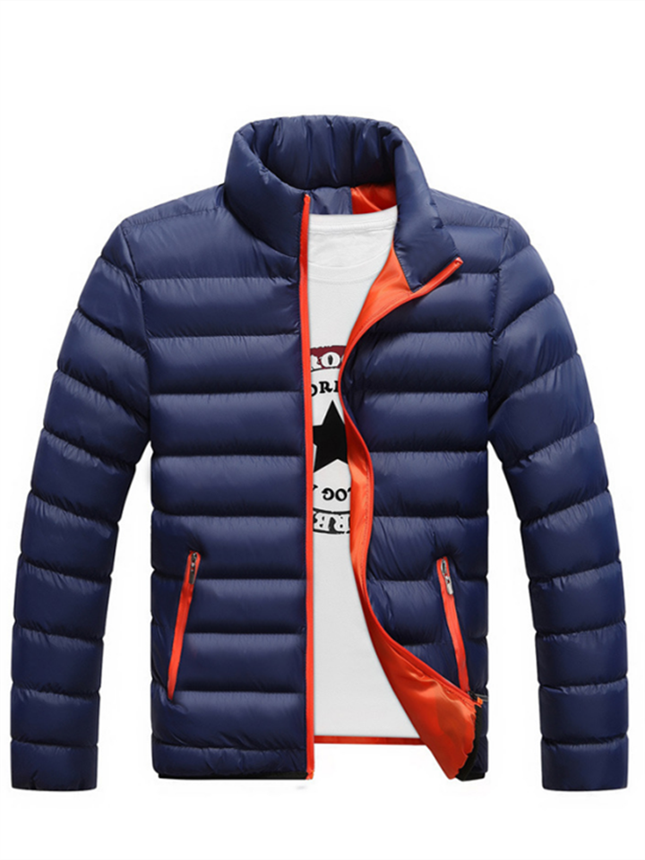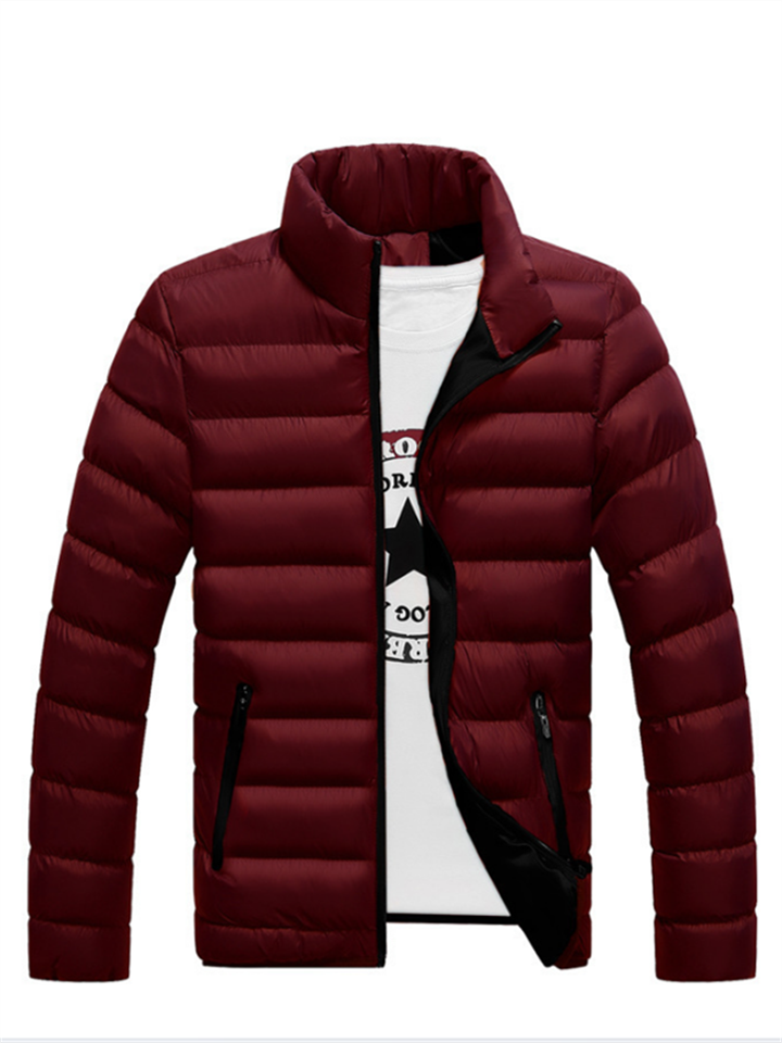 Men's Solid Color Winter Slim Side Seam Pockets Casual Stand-up Collar Long-sleeved Cotton Coat Youth Jacket Men's Clothing