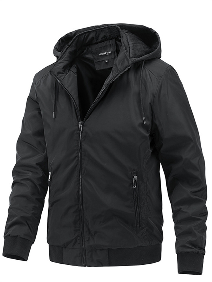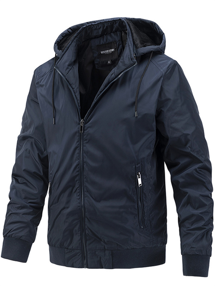 Men's Spring and Autumn Removable Hooded Jacket Casual Sports Thin Cotton Solid Color Coat Trend Men's Clothing