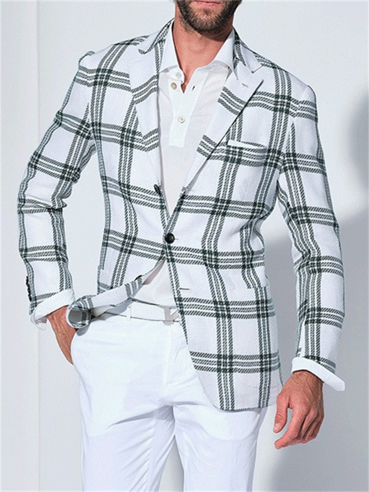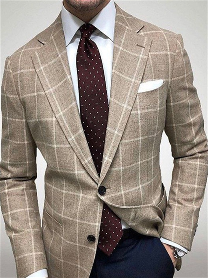 Men's Spring and Fall Tops Business Casual Printing Double-button Suit Jacket British Suit