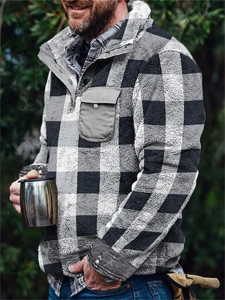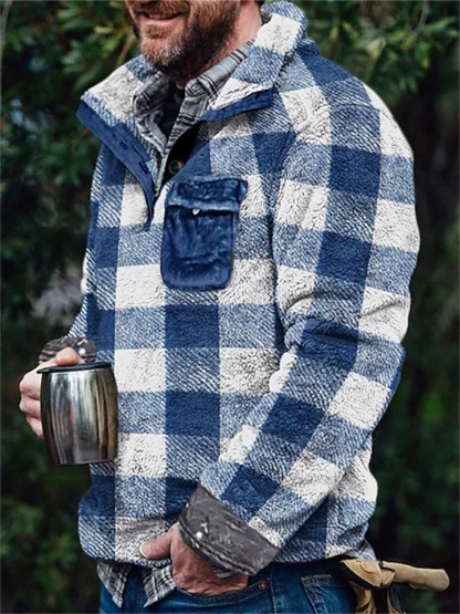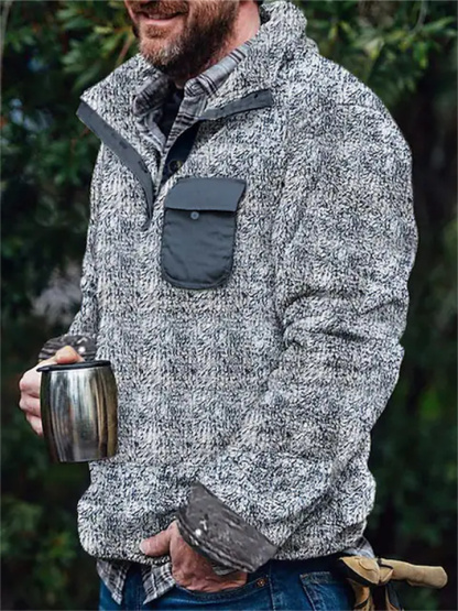 Men's Sweatshirt Fuzzy Sherpa Pullover Red Blue Brown Green Khaki Standing Collar Solid Color Streetwear Casual Big and Tall Winter Fall Clothing Apparel Hoodies Sweatshirts Long Sleeve