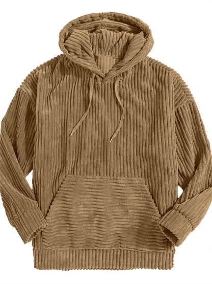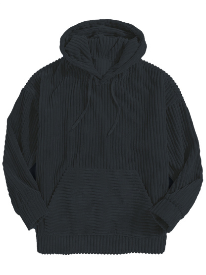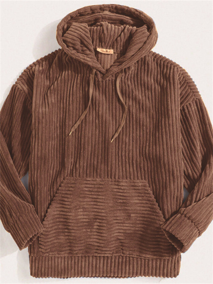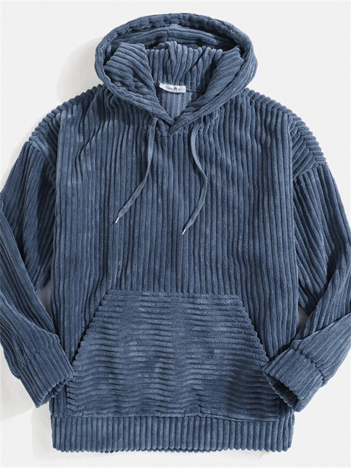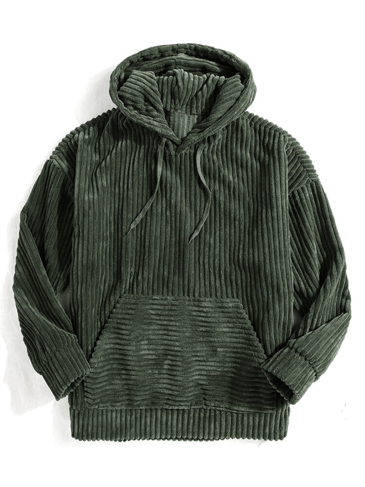 Men's Thickened Corduroy Long Sleeve Solid Color Relaxed Fit Hoodie