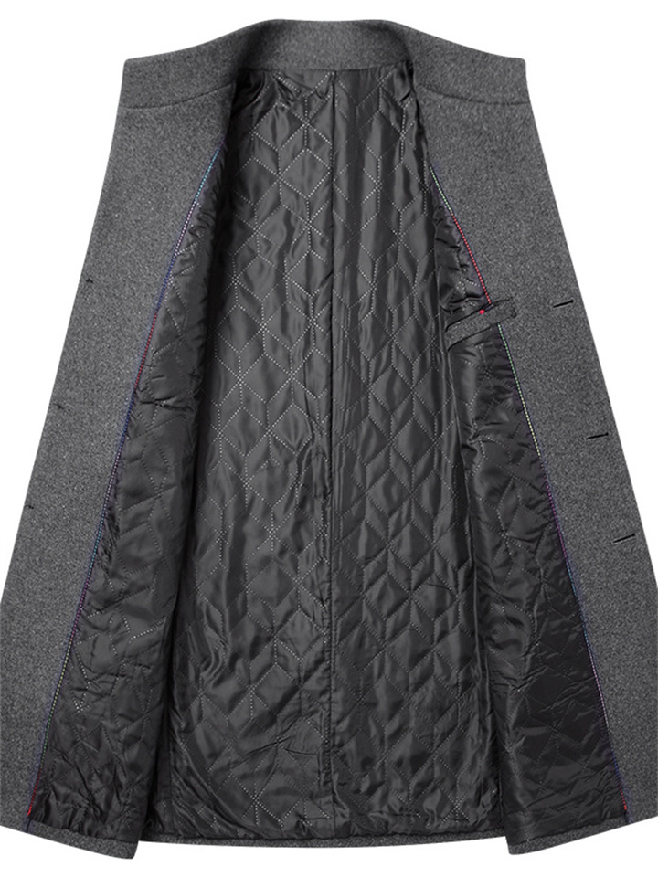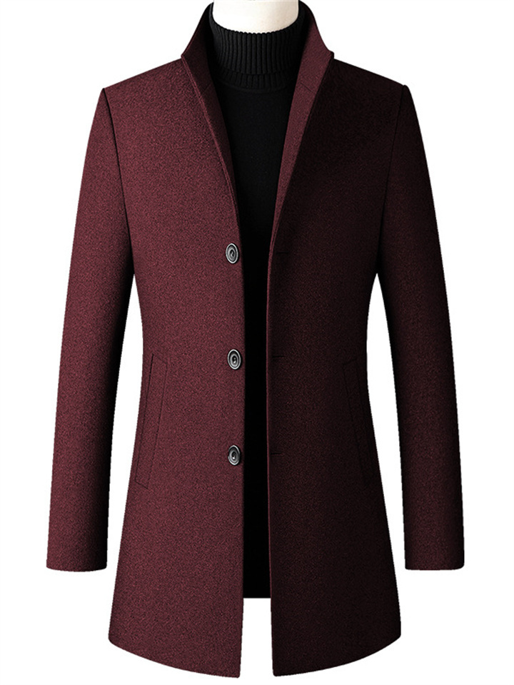 Men's Winter Coat Wool Coat Overcoat Business Daily Wear Winter Fall Wool Thermal Warm Outdoor Outerwear Clothing Apparel Fashion Warm Ups Solid Colored Pocket Standing Collar Single Breasted