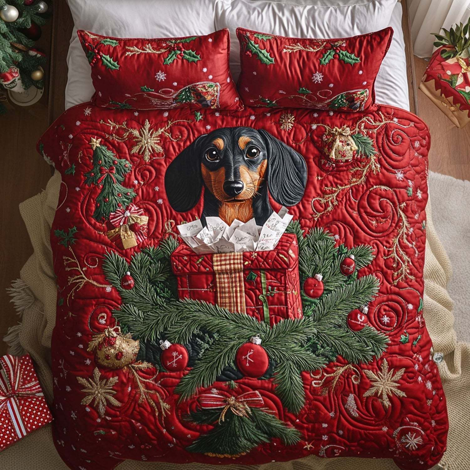 Mistletoe Dachshund 3-Piece Quilted Bedding Set NCU0PTT1458