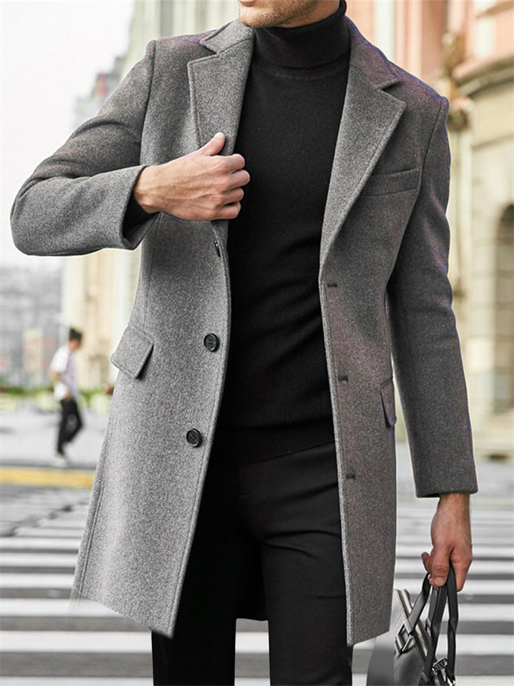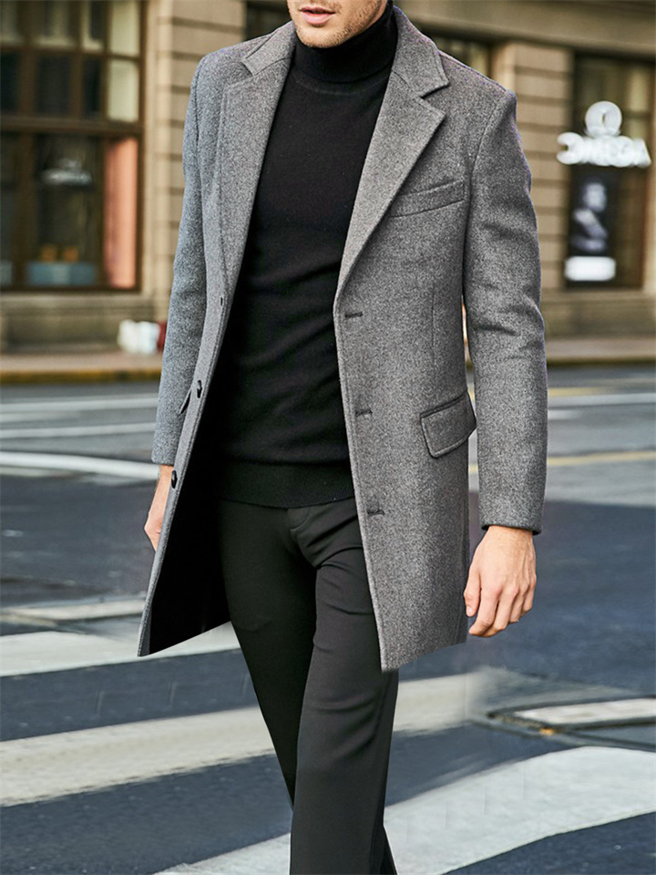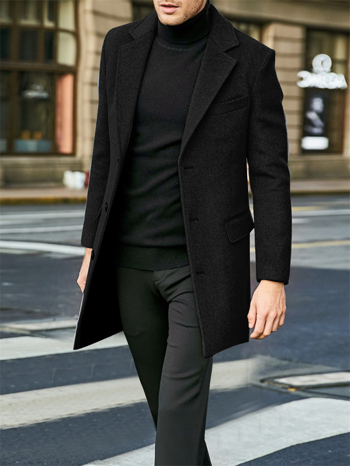 New Arrival Fall/Winter Woolen Men's Coat - Thickened Tweed Jacket - Black Coat