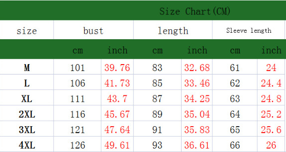 Sizes: S, M, L, XL, XXL, 3XL, 4XL, 5XL