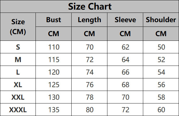 Sizes: S, M, L, XL, XXL, XXXL