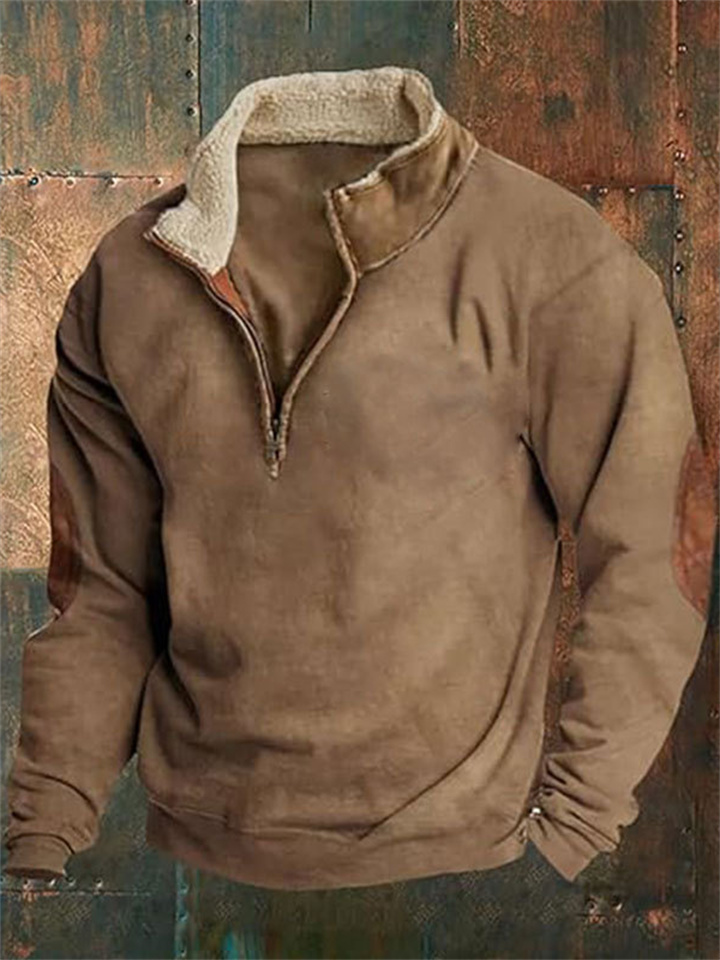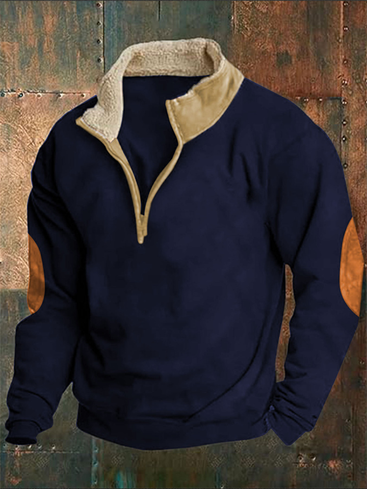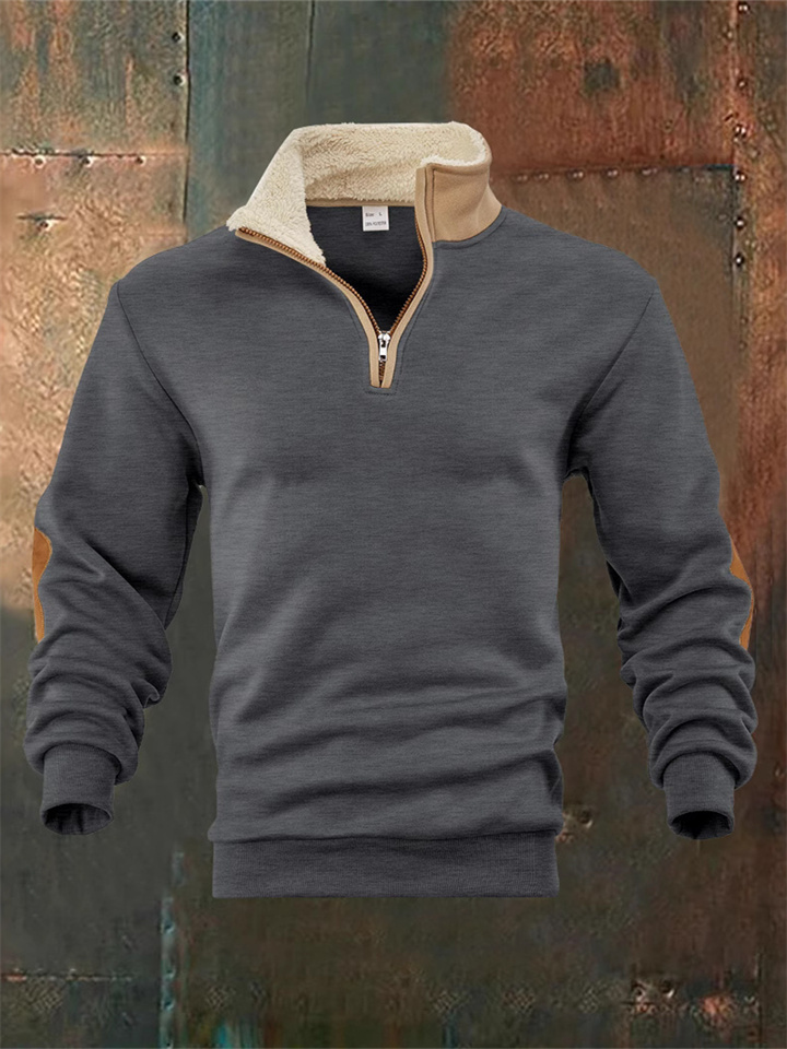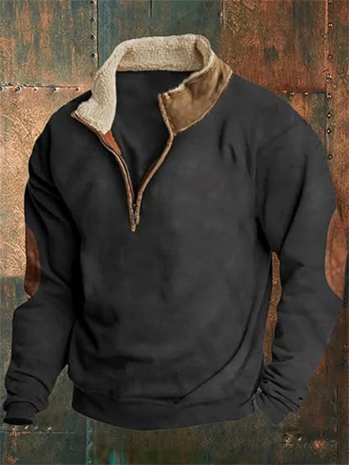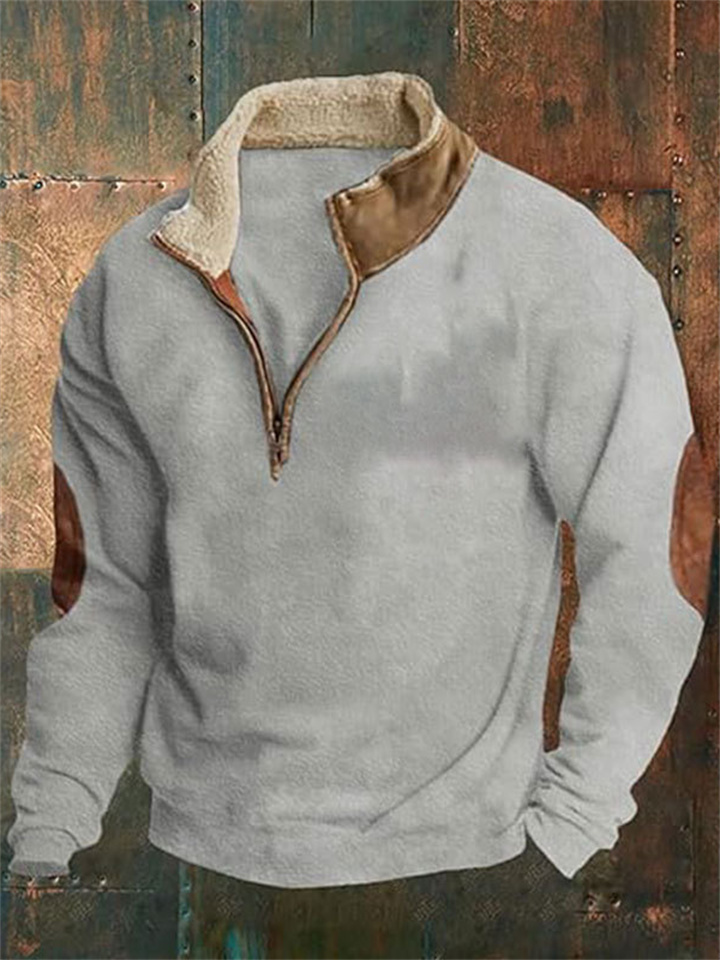 New Arrival Retro Patchwork Embroidered Men's Long-Sleeve Solid Color Hoodie