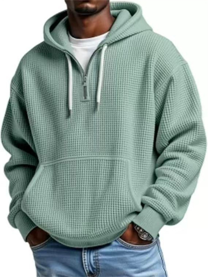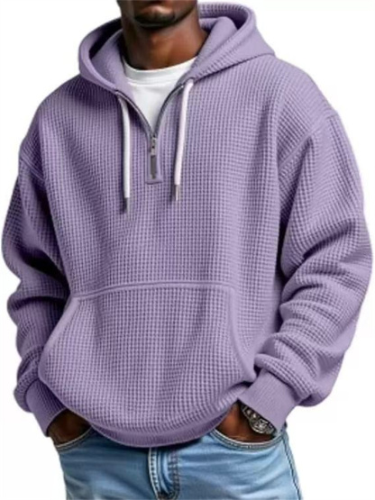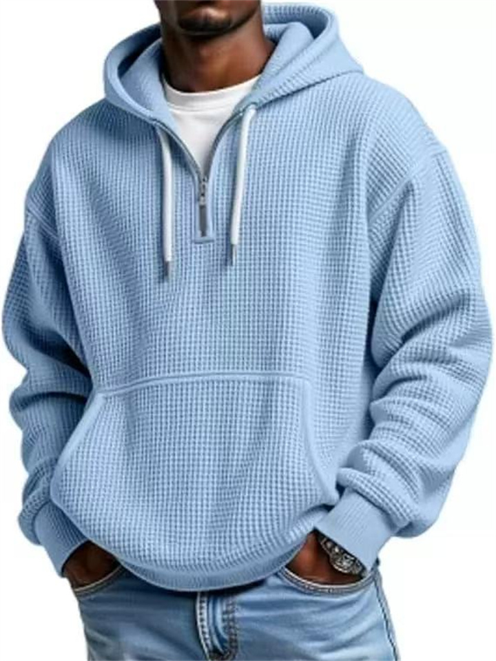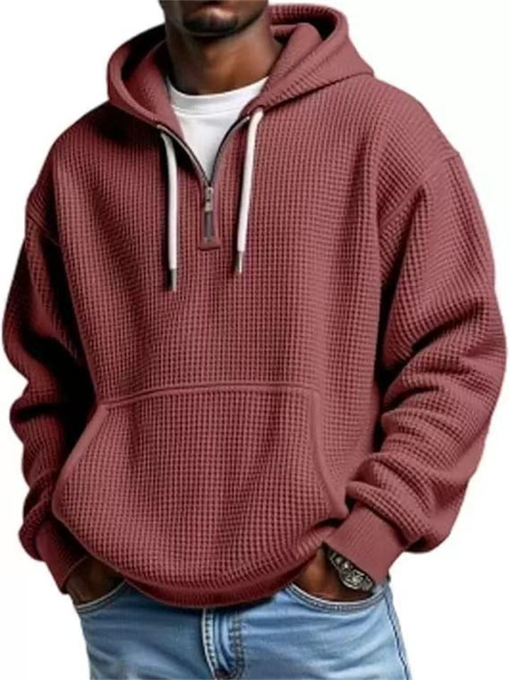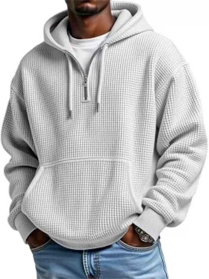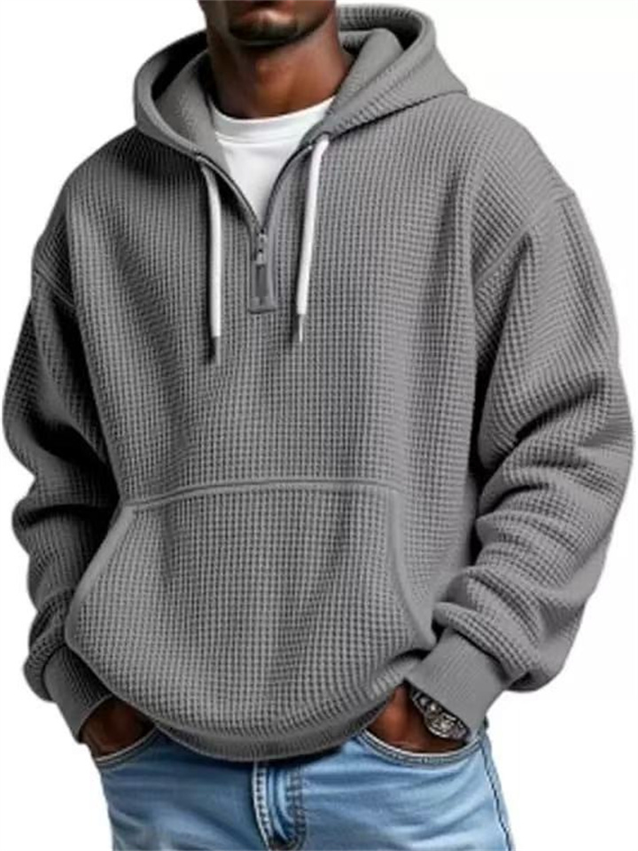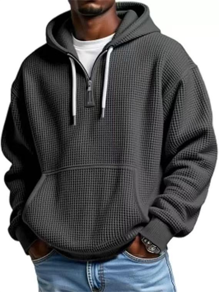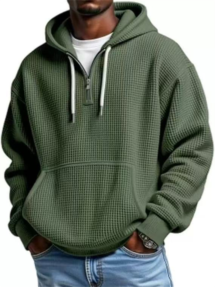 New Arrival Waffle Weave Long Sleeve Hooded Sweatshirt for Men - Solid Color Loose-Fit Athletic Sweatshirt