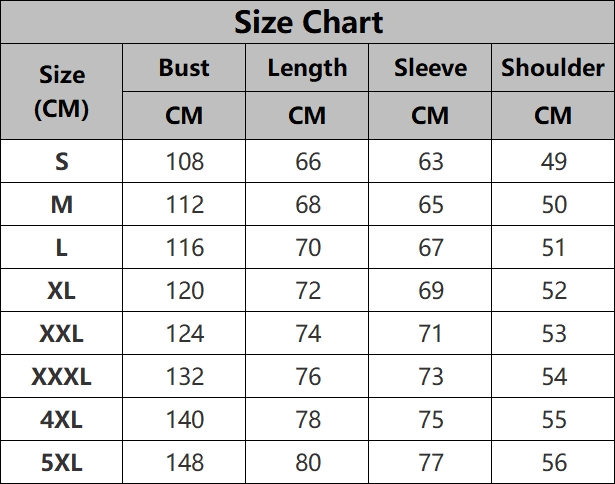 Sizes: S, M, L, XL, XXL, XXXL, XXXXL, 5XL