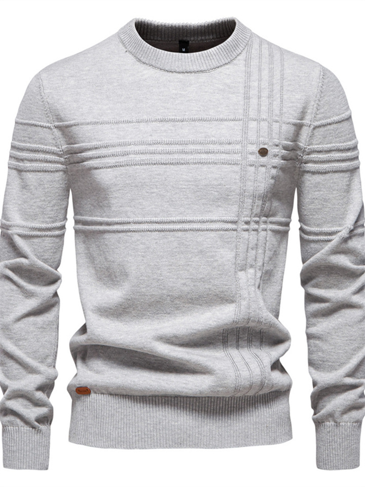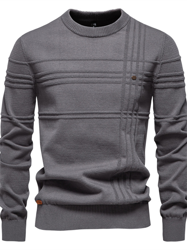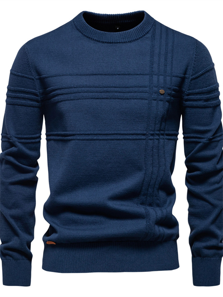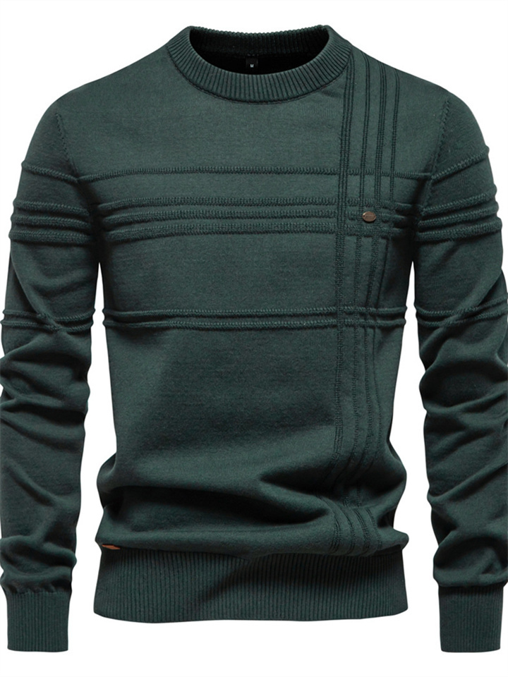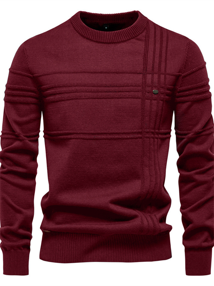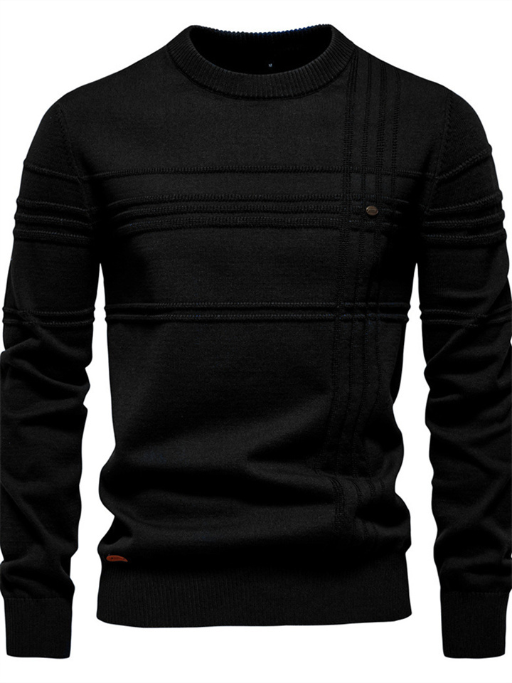 New Fall/Winter European Size Men's Crew Neck Solid Color Knit Sweater