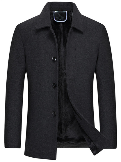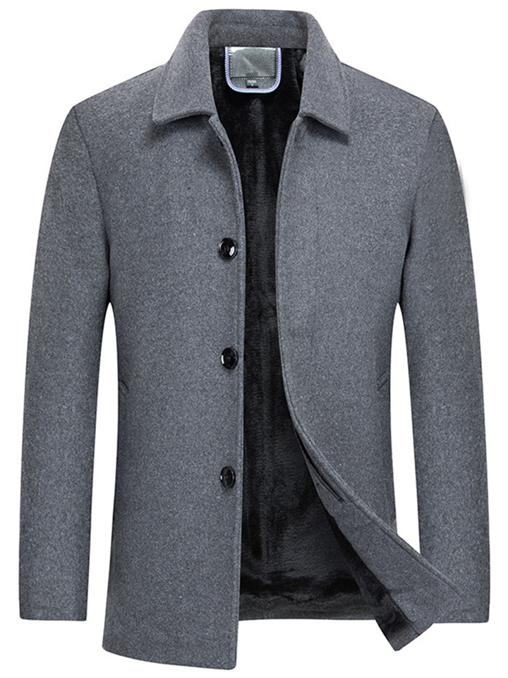 New Fall/Winter Men's Business Wool Coat - Fashionable Fleece-Lined Thickened Woolen Men's Outerwear - Notched Lapel Wool Coat