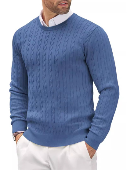 New Fall/Winter Men's Crew Neck Knit Sweater - Long Sleeve Cable-Knit Solid Color Base Layer