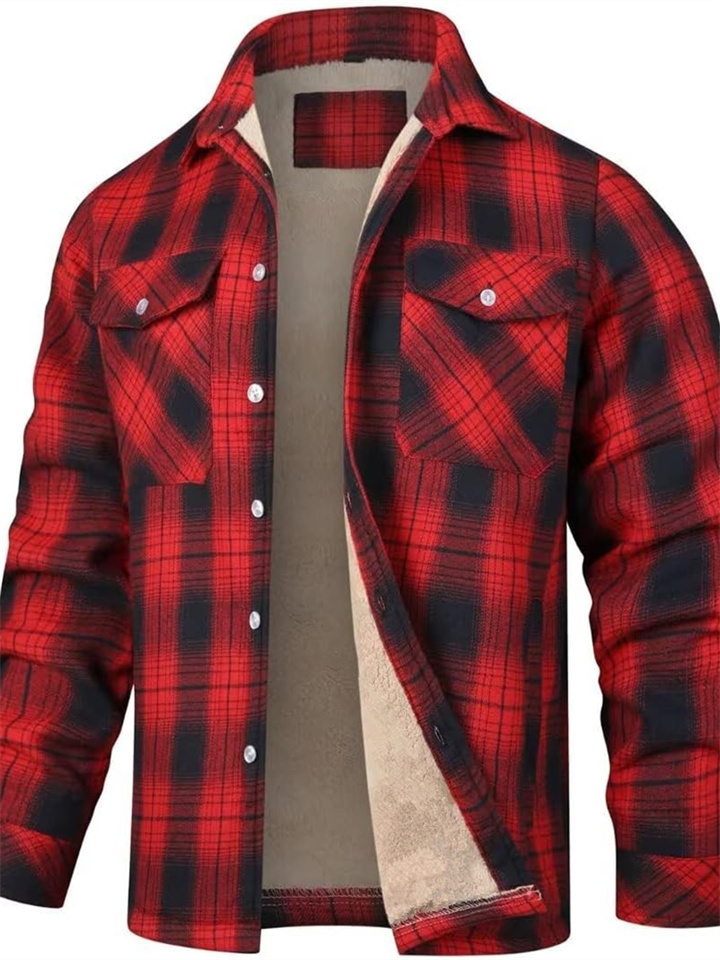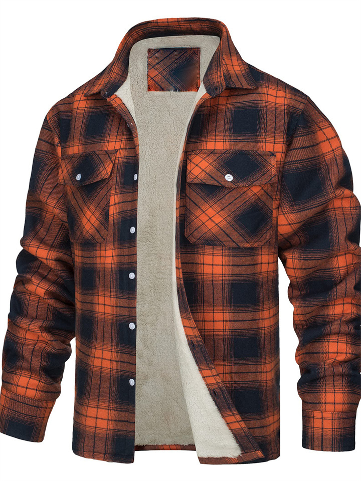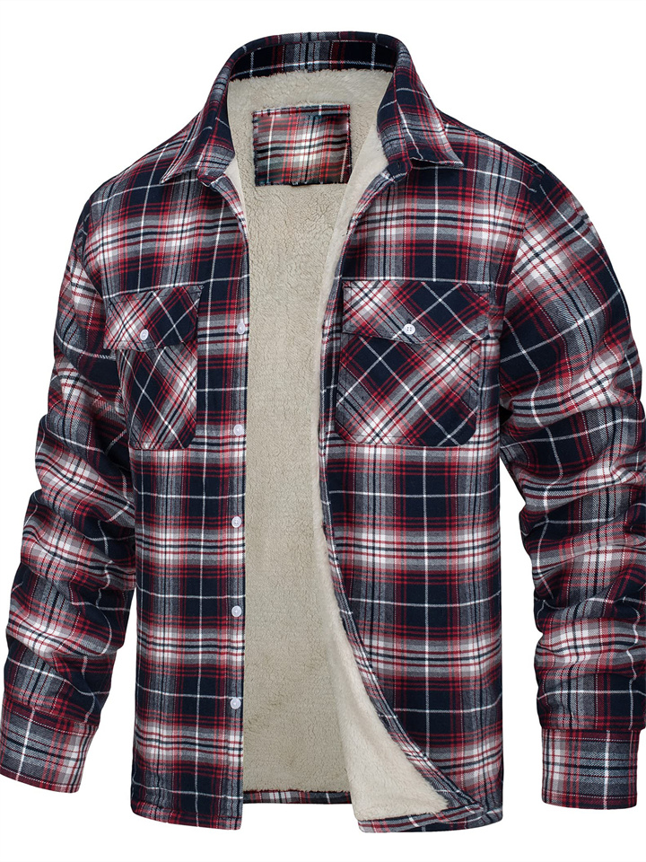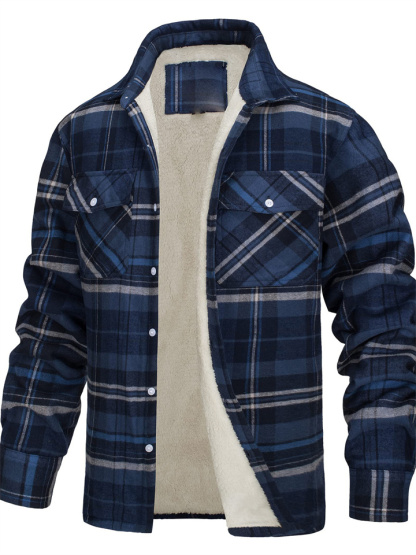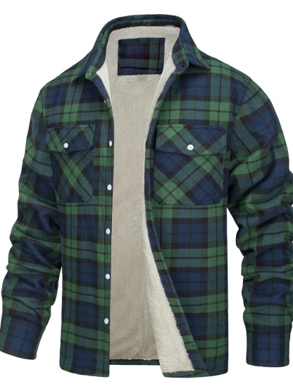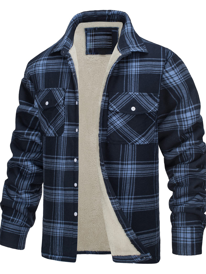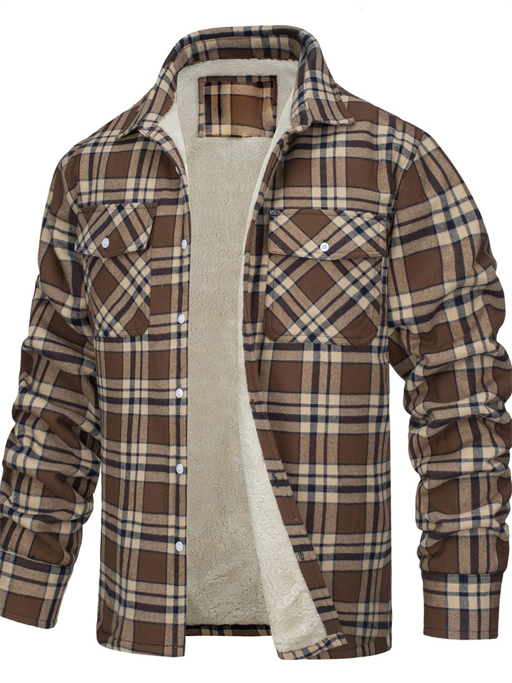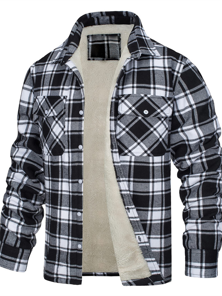 New Long-sleeved Lapel Padded Plaid Men's Jacket