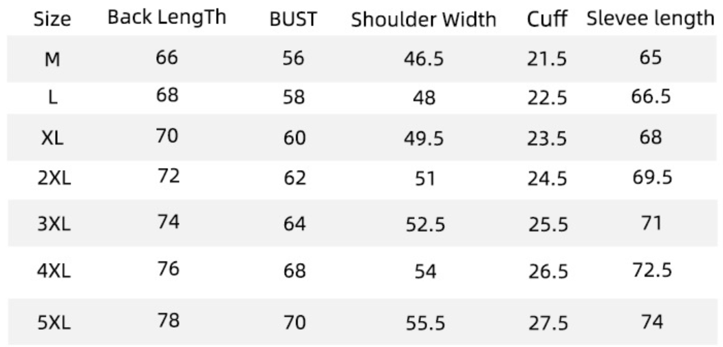 Size:M,L,XL,2XL,3XL,4XL,5XL