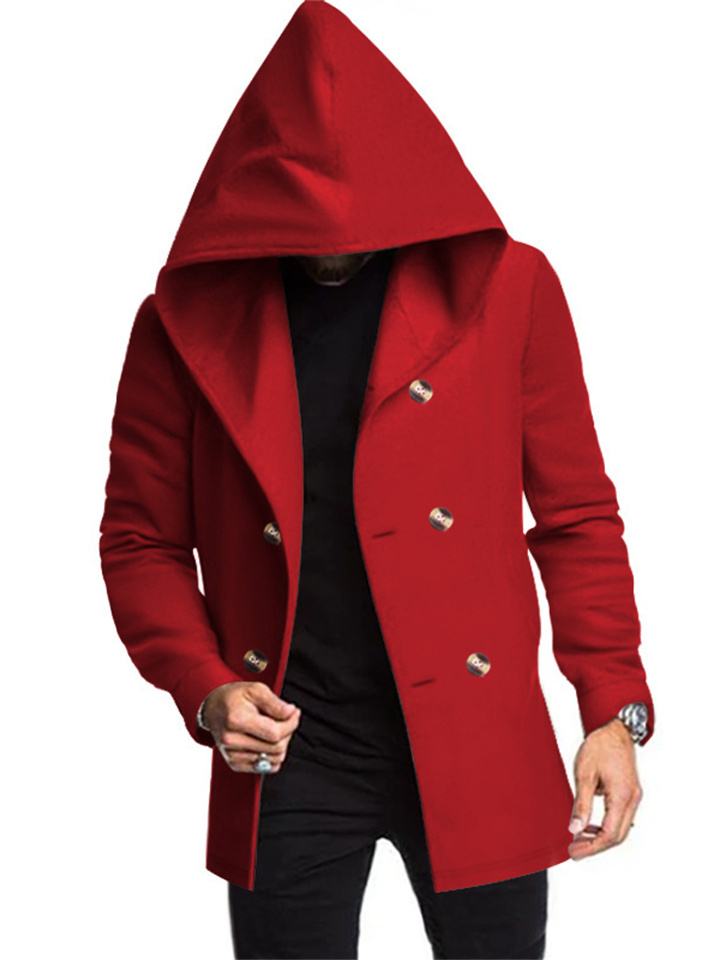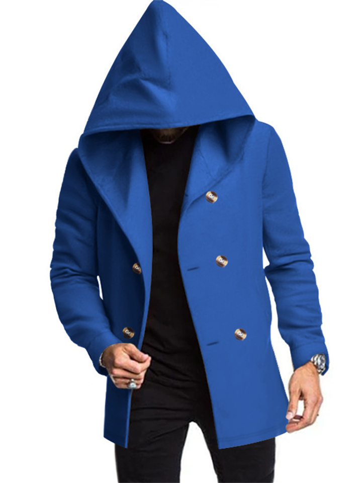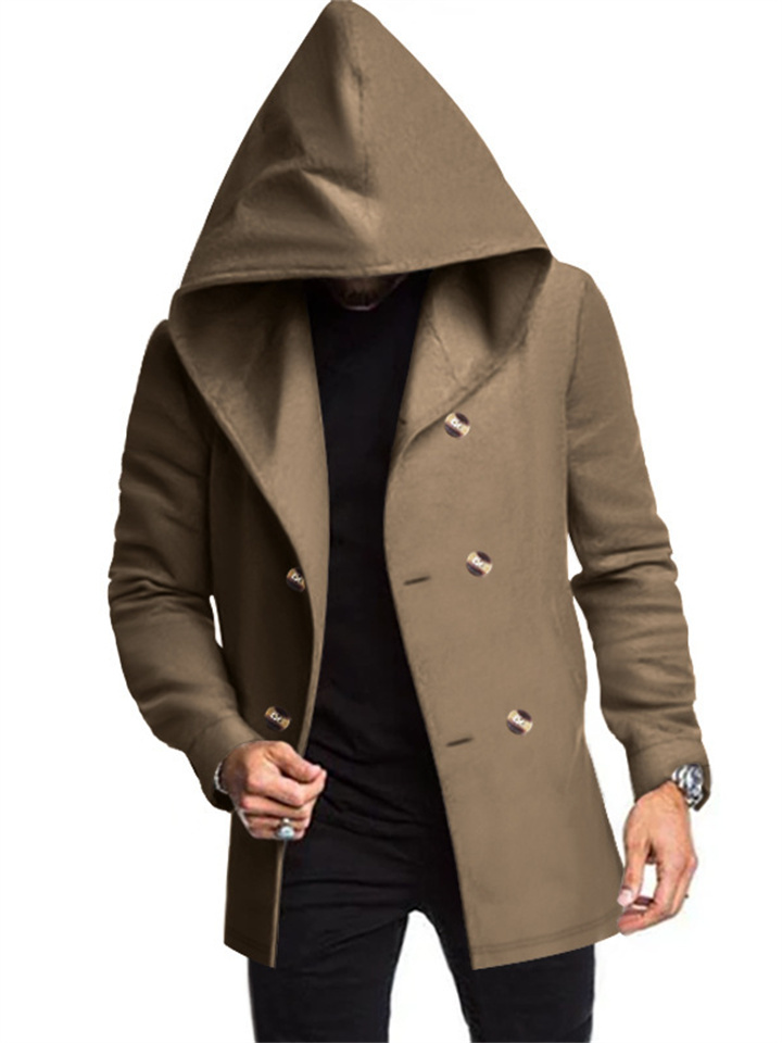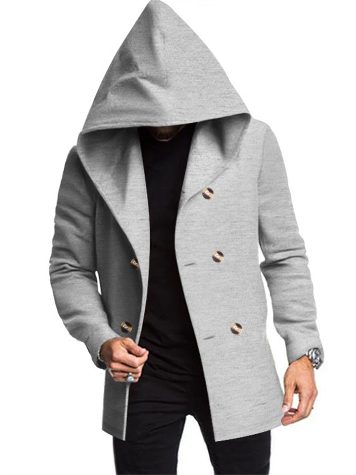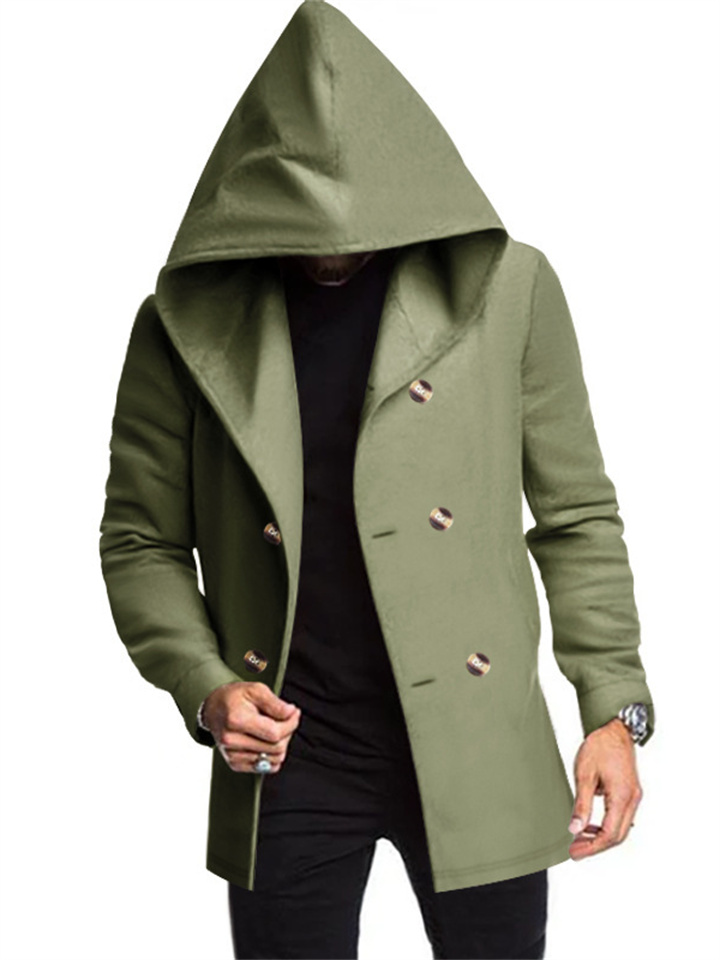 New Men's Medium-length Slim Windbreaker Hooded Casual Solid Color Coat
