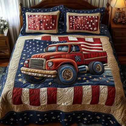 Patriotic Truck 3-Piece Quilted Bedding Set GFTOTP3020