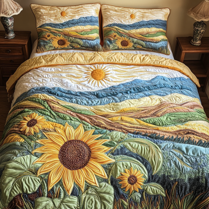 Peaceful Sunflowers 3-Piece Quilted Bedding Set NCU0NVH319