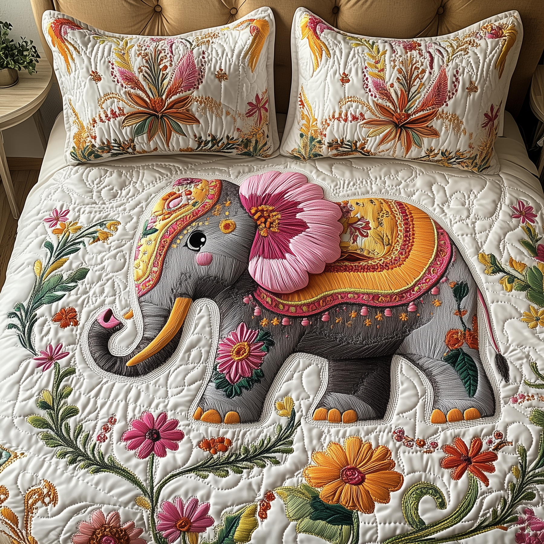 Petal-Adorned Giant 3-Piece Quilted Bedding Set GFTOHD2155