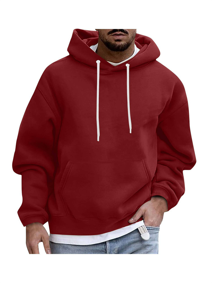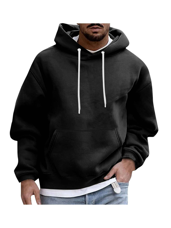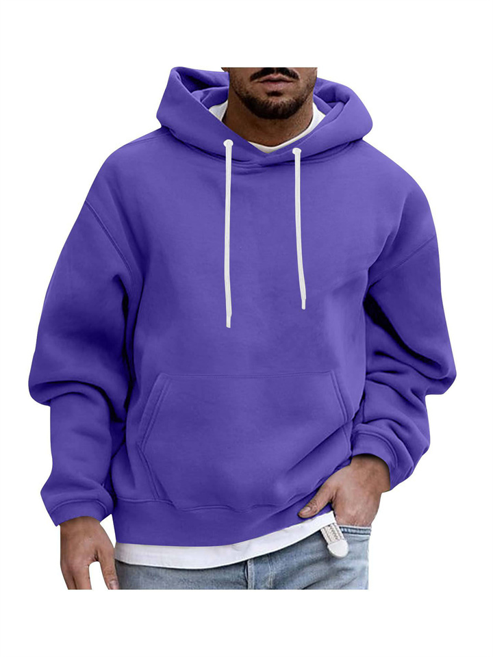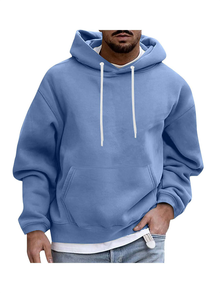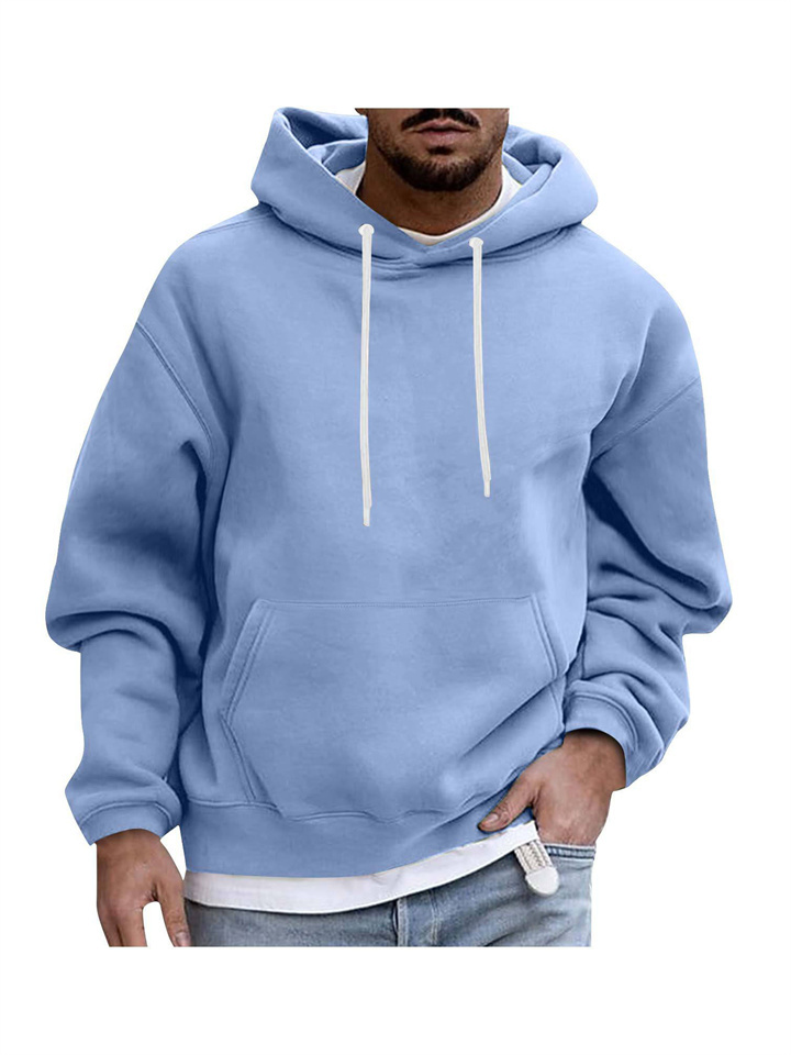 Pullover Long Sleeve Padded Drop Shoulder Sleeve Men's Hoodie Loose Casual Fleece Pocket Men's Hooded Sweatshirt
