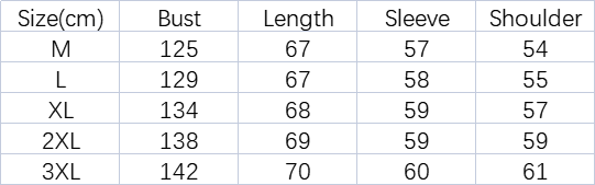 Sizes: M, L, XL, 2XL, 3XL