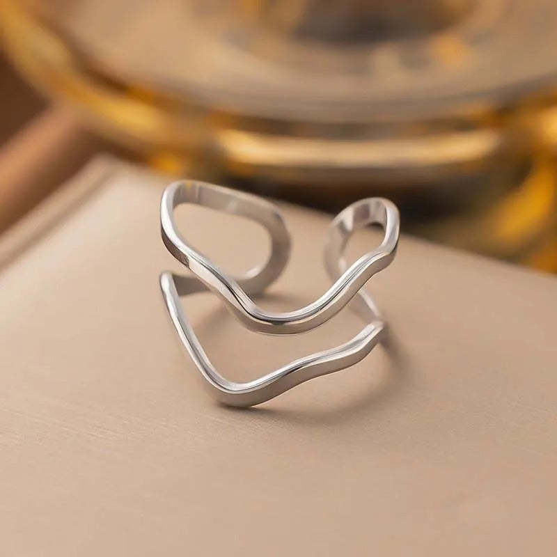 Sculptural Wavy Silver Design Open Ring