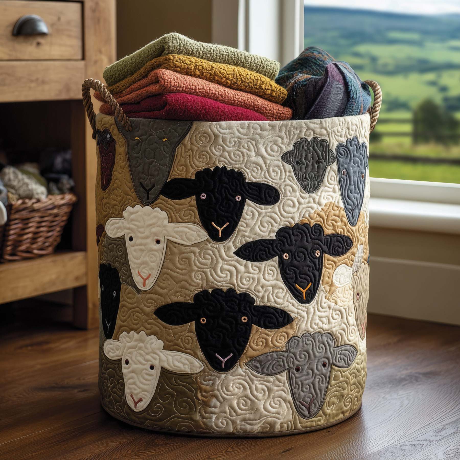 Sheep Heaven Quilted Laundry Basket GFTONL5885