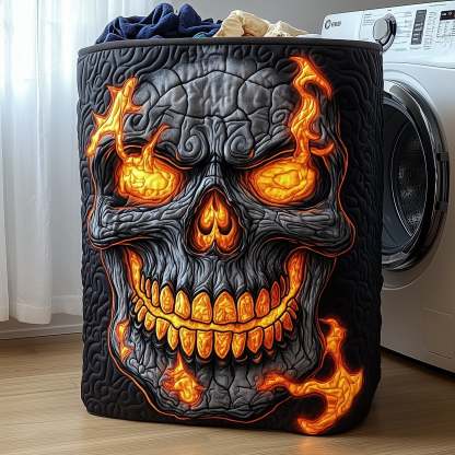 Skull on Fire Quilted Laundry Basket GFTOHD10052