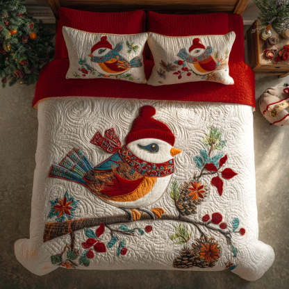 Snowberry Chickadee 3-Piece Quilted Bedding Set NCU0PTT1351